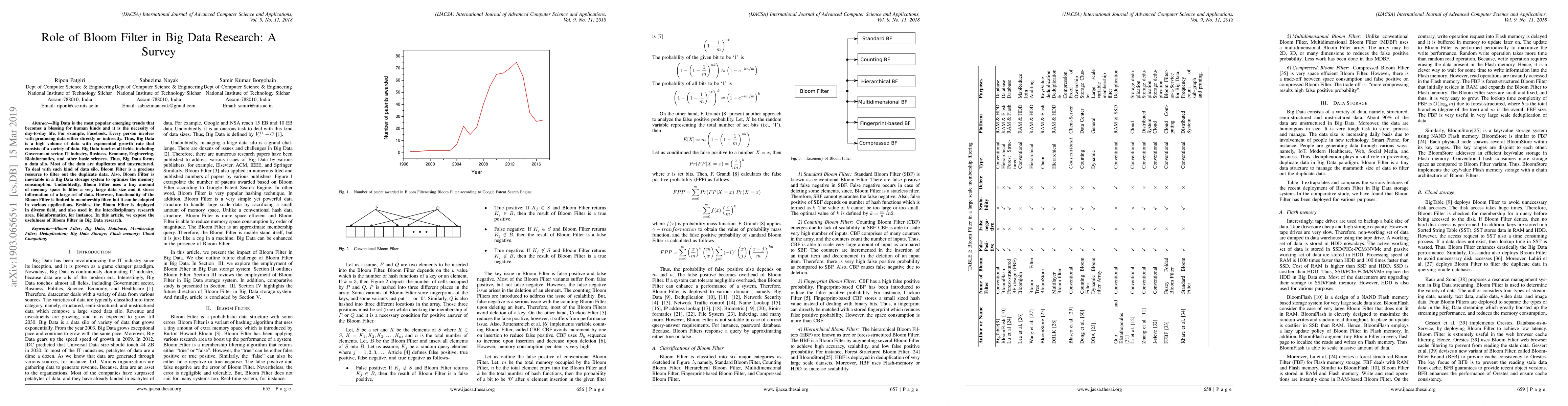 This paper explores the role of Bloom Filter in Big Data research, highlighting its effectiveness in filtering out duplicate data and optimizing memory consumption. It showcases various applications of Bloom Filter in diverse fields, including Bioinformatics, to demonstrate its usefulness in Big Data storage systems.
