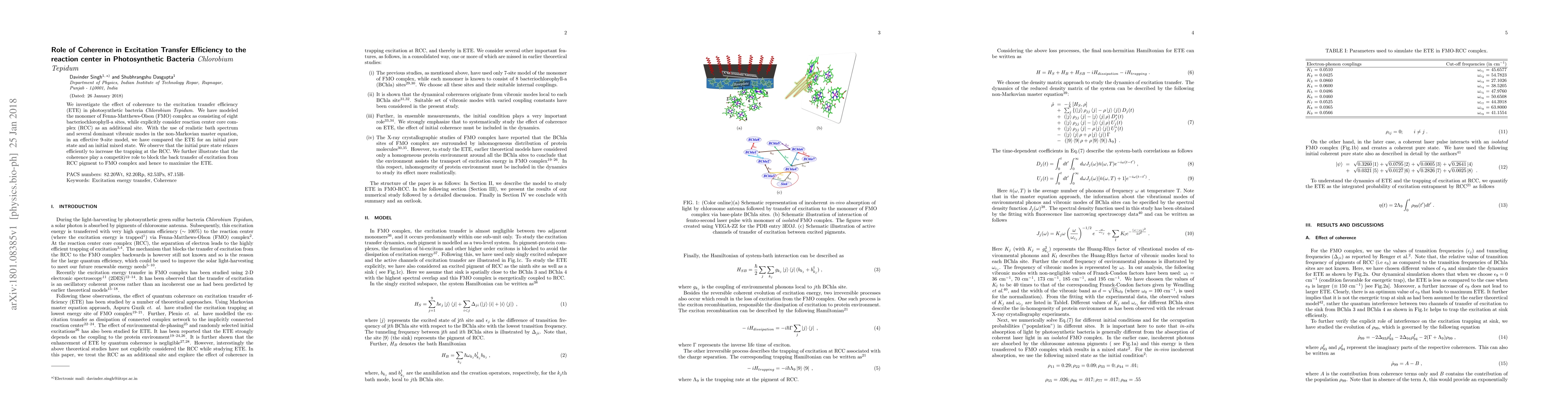 This research examines the impact of coherence on excitation transfer efficiency (ETE) in the photosynthetic bacteria Chlorobium tepidum, using a 9-site model of the FMO complex and RCC. It finds that coherence enhances ETE by preventing back transfer from the reaction center, thereby increasing trapping efficiency.