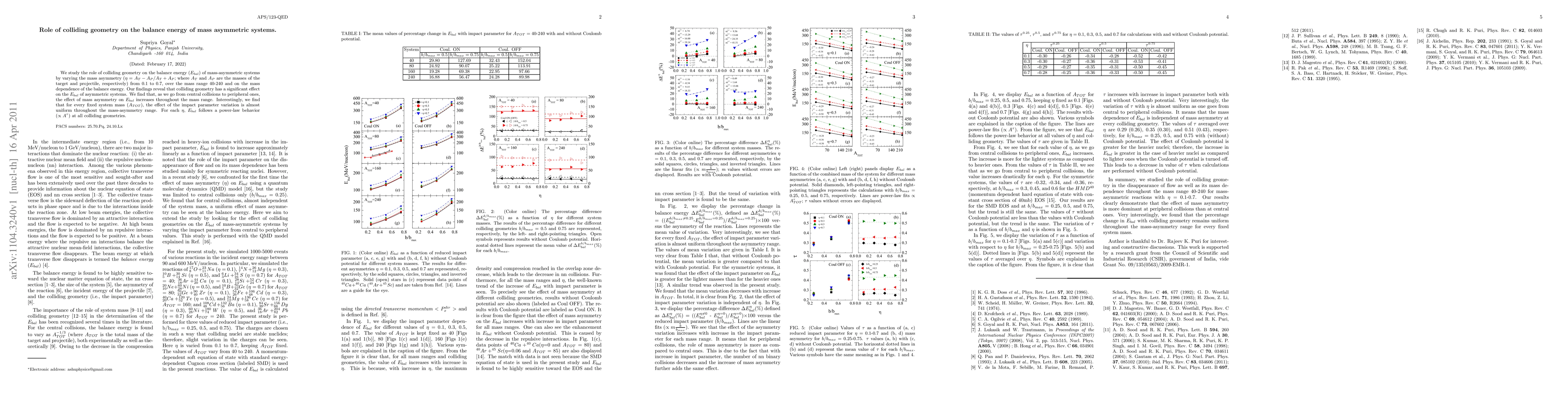 This paper investigates how colliding geometry influences the balance energy (Ebal) in mass-asymmetric systems, finding that geometry significantly affects Ebal, with peripheral collisions amplifying the impact of mass asymmetry. It concludes that Ebal follows a power-law behavior across different geometries for each mass asymmetry level.