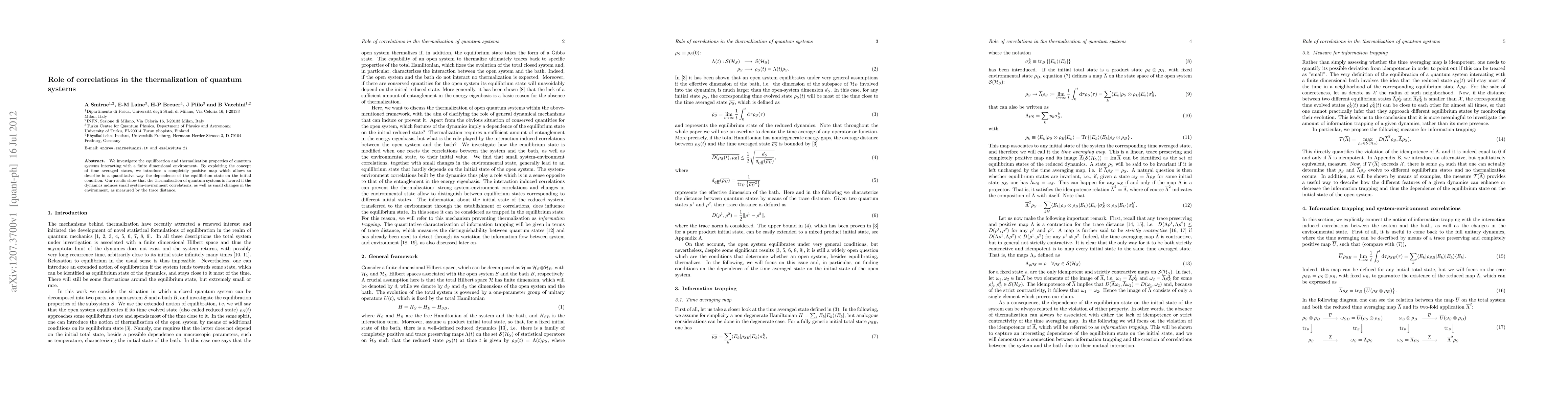 We investigate the equilibration and thermalization properties of quantum systems interacting with a finite dimensional environment. By exploiting the concept of time averaged states, we introduce a completely positive map which allows to describe in a quantitative way the dependence of the equilibrium state on the initial condition. Our results show that the thermalization of quantum systems is favored if the dynamics induces small system-environment correlations, as well as small changes in the environment, as measured by the trace distance.