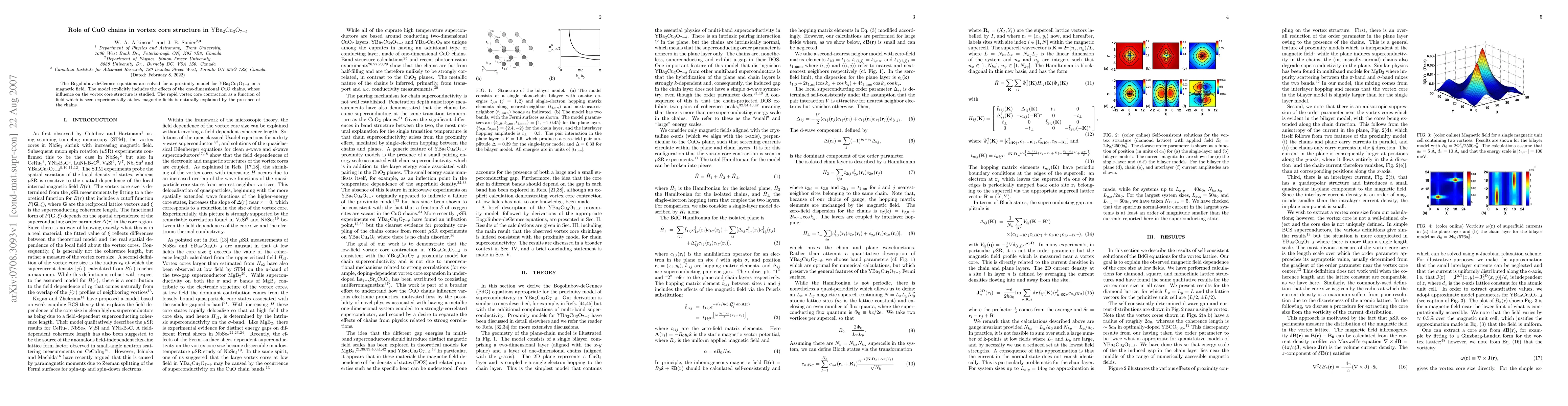 The Bogoliubov-deGennes equations are solved for a proximity model for YBa_2Cu_3O_{7-\delta} in a magnetic field. The model explicitly includes the effects of the one-dimensional CuO chains, whose influence on the vortex core structure is studied. The rapid vortex core contraction as a function of field which is seen experimentally at low magnetic fields is naturally explained by the presence of the chains.