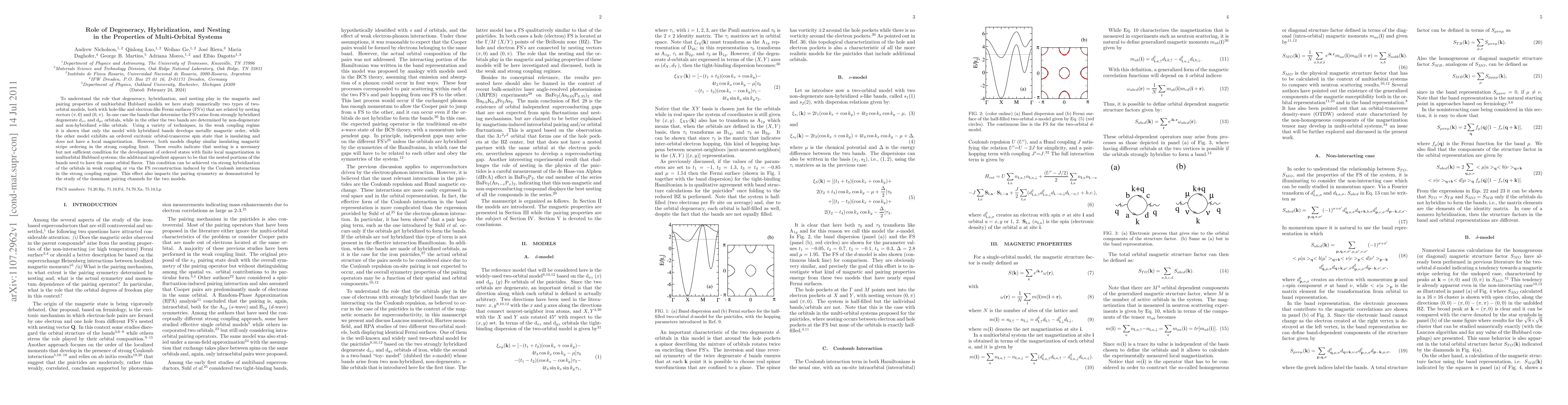 To understand the role that degeneracy, hybridization, and nesting play in the magnetic and pairing properties of multiorbital Hubbard models we here study numerically two types of two- orbital models, both with hole-like and electron-like Fermi surfaces (FS's) that are related by nesting vectors ({\pi}, 0) and (0, {\pi}). In one case the bands that determine the FS's arise from strongly hybridized degenerate dxz and dyz orbitals, while in the other the two bands are determined by non-degenerate and non-hybridized s-like orbitals. Using a variety of techniques, in the weak coupling regime it is shown that only the model with hybridized bands develops metallic magnetic order, while the other model exhibits an ordered excitonic orbital-transverse spin state that is insulating and does not have a local magnetization. However, both models display similar insulating magnetic stripe ordering in the strong coupling limit. These results indicate that nesting is a necessary but not sufficient condition for the development of ordered states with finite local magnetization in multiorbital Hubbard systems; the additional ingredient appears to be that the nested portions of the bands need to have the same orbital flavor. This condition can be achieved via strong hybridization of the orbitals in weak coupling or via the FS reconstruction induced by the Coulomb interactions in the strong coupling regime. This effect also impacts the pairing symmetry as demonstrated by the study of the dominant pairing channels for the two models.