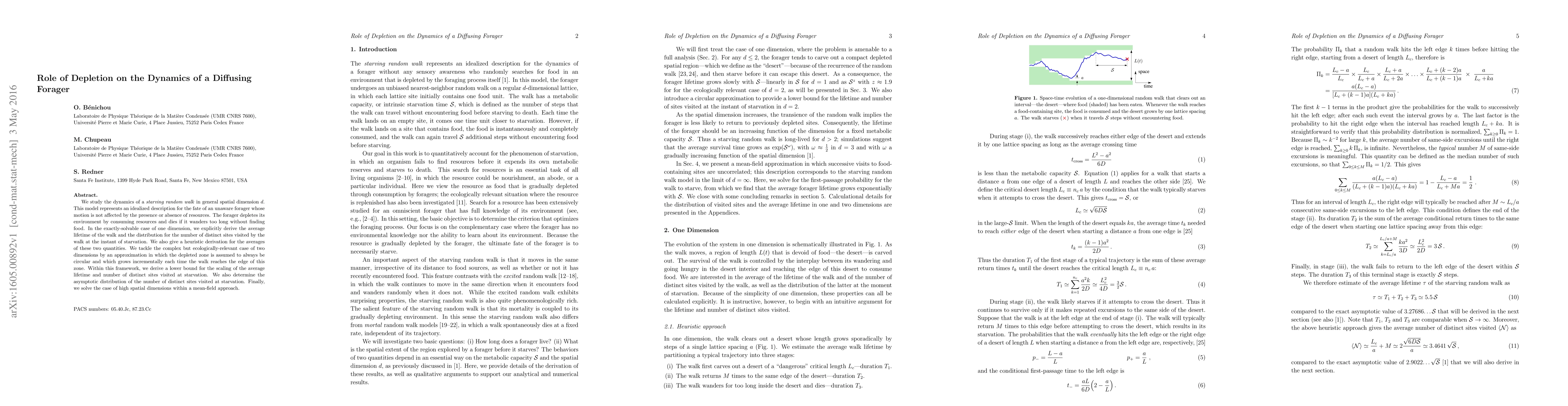 A theoretical framework was developed to analyze the effects of depletion on foraging behavior in a random walk model.