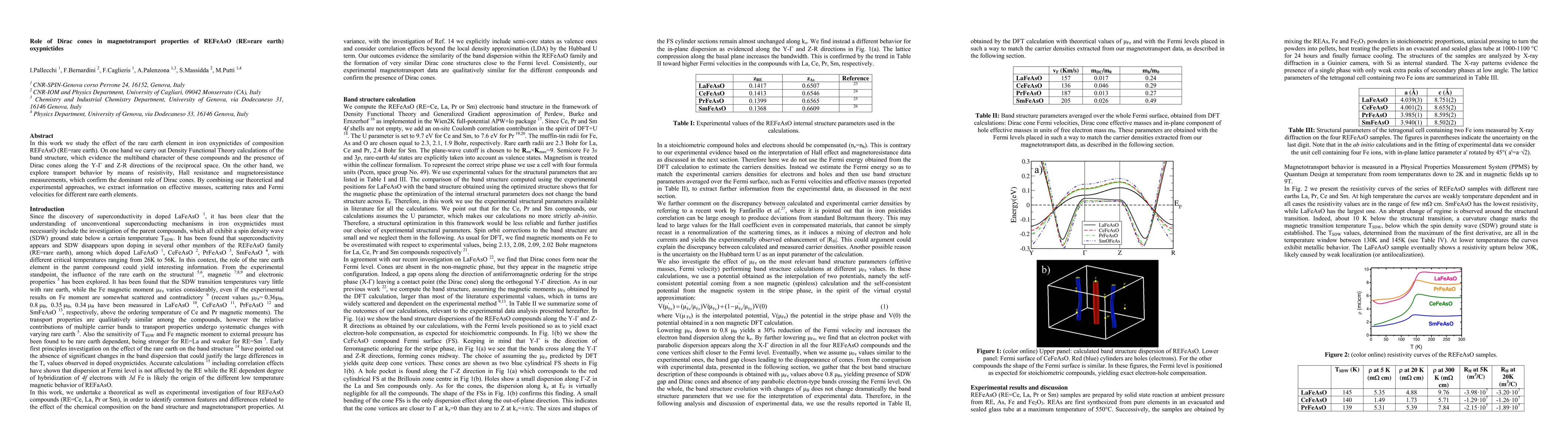 This research investigates the impact of rare earth elements in REFeAsO oxypnictides, revealing multiband characteristics and Dirac cones via Density Functional Theory. Experimental transport measurements confirm the significant influence of Dirac cones on magnetotransport properties, providing insights into effective masses and scattering rates.