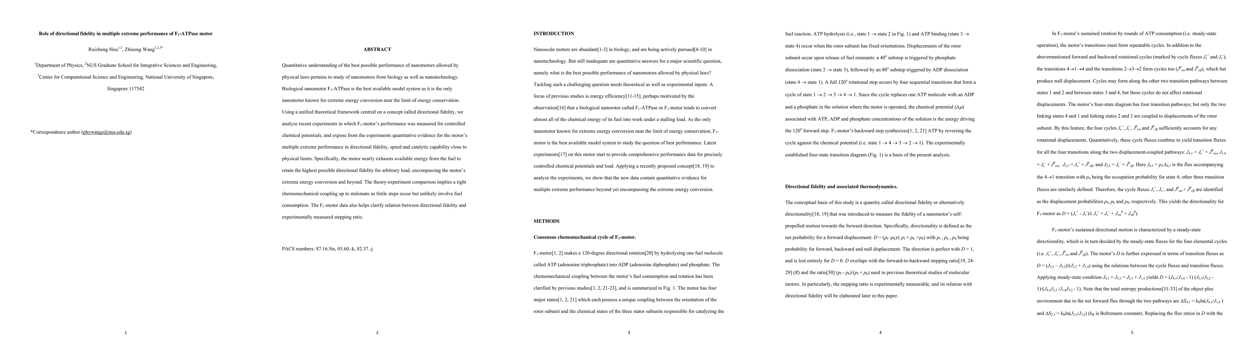 Quantitative understanding of the best possible performance of nanomotors allowed by physical laws pertains to study of nanomotors from biology as well as nanotechnology. Biological nanomotor F1-ATPase is the best available model system as it is the only nanomotor known for extreme energy conversion near the limit of energy conservation. Using a unified theoretical framework centred on a concept called directional fidelity, we analyze recent experiments in which F1-motor's performance was measured for controlled chemical potentials, and expose from the experiments quantitative evidence for the motor's multiple extreme performance in directional fidelity, speed and catalytic capability close to physical limits. Specifically, the motor nearly exhausts available energy from the fuel to retain the highest possible directional fidelity for arbitrary load, encompassing the motor's extreme energy conversion and beyond. The theory-experiment comparison implies a tight chemomechanical coupling up to stalemate as futile steps occur but unlikely involve fuel consumption. The F1-motor data also helps clarify relation between directional fidelity and experimentally measured stepping ratio.