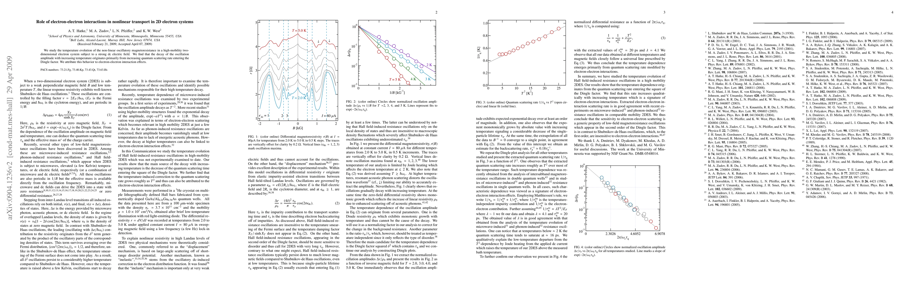We study the temperature evolution of the non-linear oscillatory magnetoresistance in a high-mobility two-dimensional electron system subject to a strong dc electric field. We find that the decay of the oscillation amplitude with increasing temperature originates primarily from increasing quantum scattering rate entering the Dingle factor. We attribute this behavior to electron-electron interaction effects.