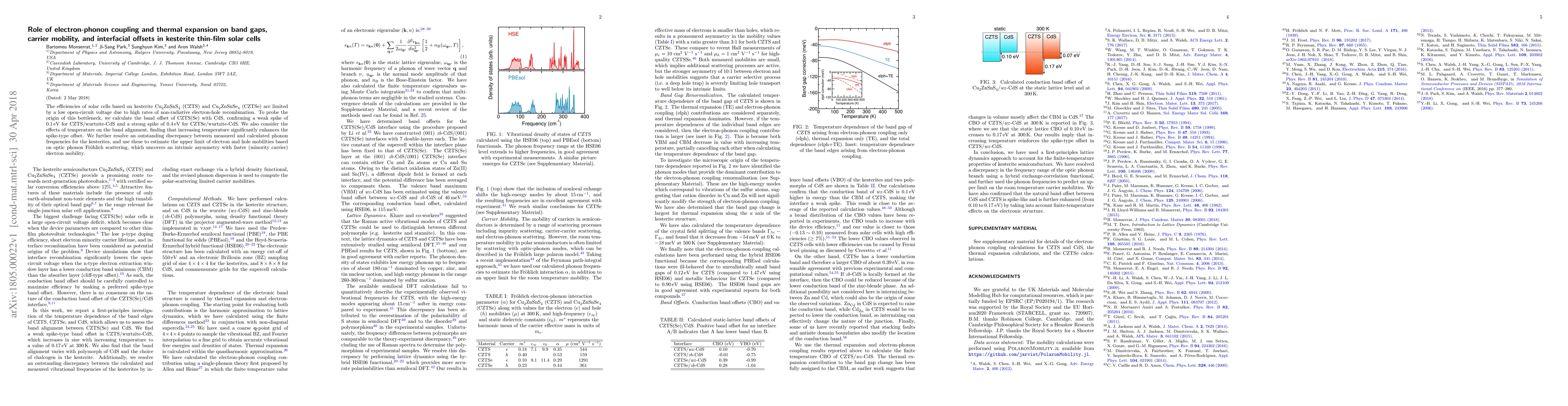 This paper investigates the impact of electron-phonon coupling and thermal expansion on the band gaps, carrier mobility, and interfacial offsets in kesterite thin-film solar cells, revealing a significant temperature-induced enhancement in spike-type band offsets and an intrinsic asymmetry favoring electron mobility.