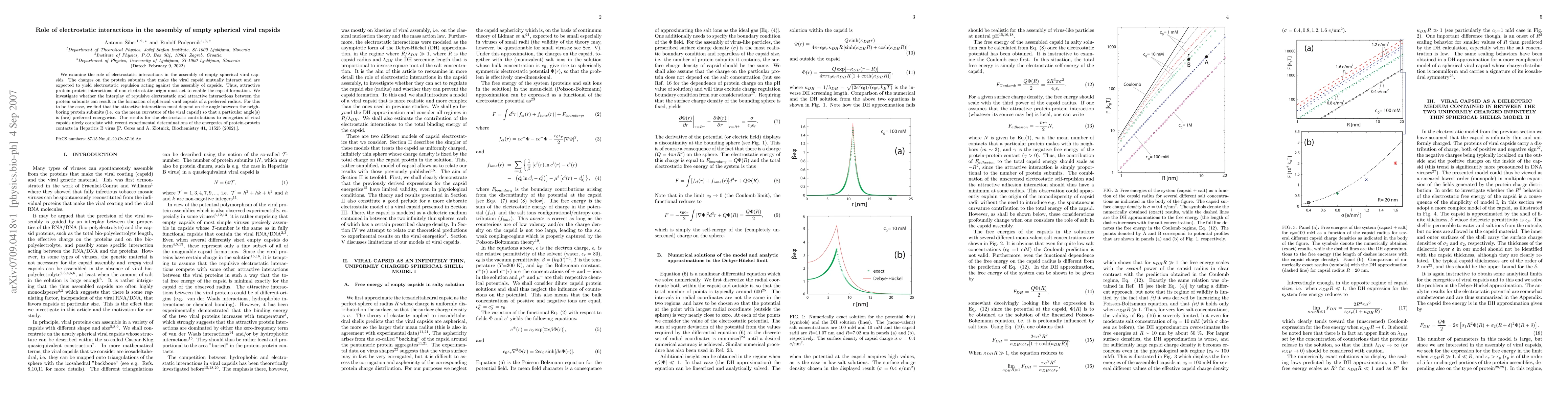 This paper investigates how electrostatic interactions influence the assembly of empty spherical viral capsids, finding that repulsive electrostatic forces must be balanced by attractive non-electrostatic interactions dependent on the angle between protein subunits to achieve capsid formation. The study correlates theoretical electrostatic contributions with experimental data on Hepatitis B virus capsid energetics.