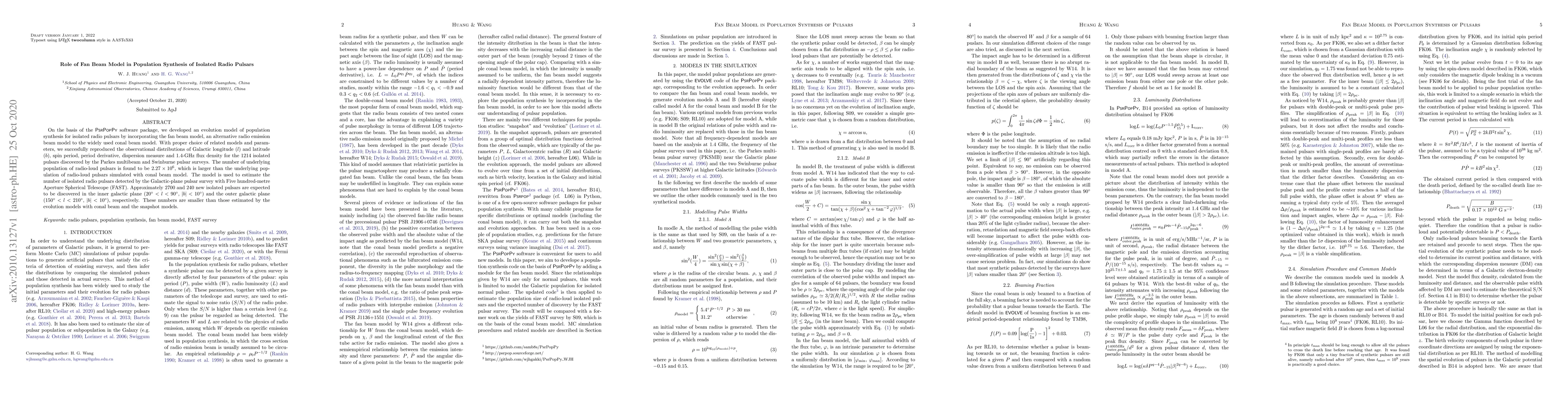 Researchers developed a population synthesis model for isolated radio pulsars that accurately reproduced observational distributions of pulsars, estimating the underlying population of radio-loud pulsars to be 2.27 million, which is larger than conal beam models.
