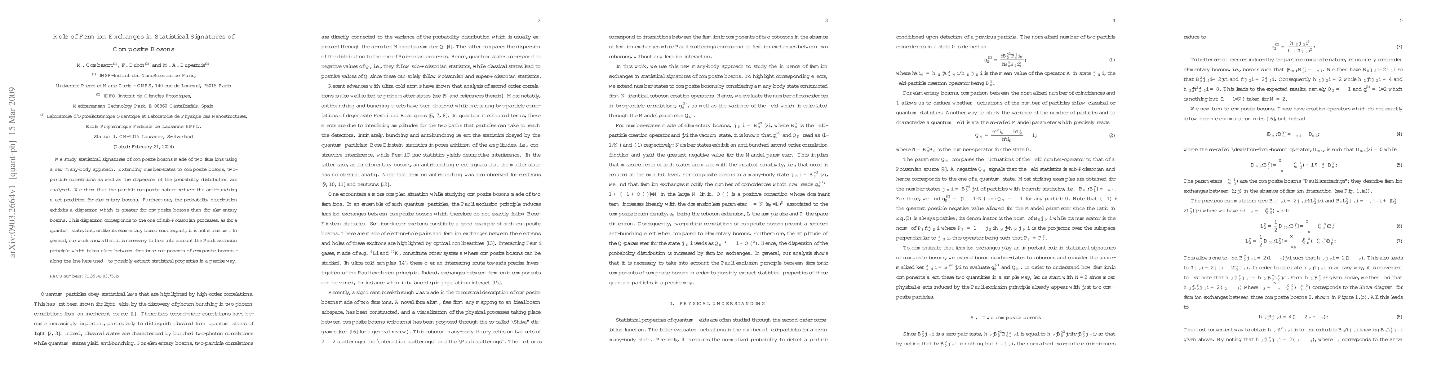 This paper investigates statistical signatures of composite bosons formed from two fermions, revealing reduced anti-bunching effects and greater dispersion in their probability distribution compared to elementary bosons. The findings underscore the importance of considering the Pauli exclusion principle in analyzing composite bosons' statistical properties.