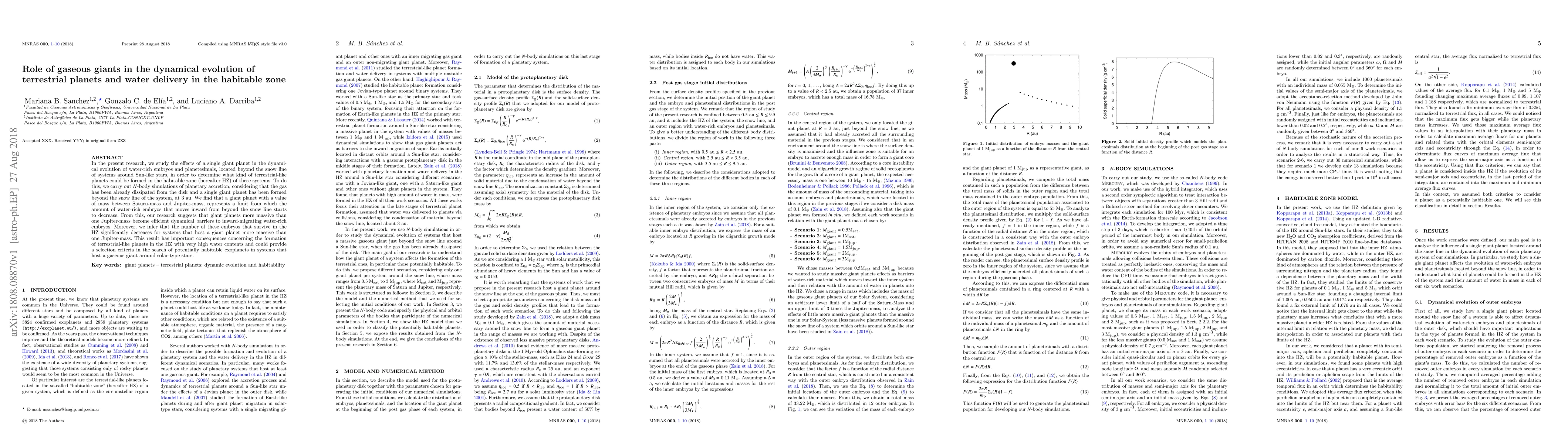 In the present research, we study the effects of a single giant planet in the dynamical evolution of water-rich embryos and planetesimals, located beyond the snow line of systems around Sun-like stars, in order to determine what kind of terrestrial-like planets could be formed in the habitable zone (hereafter HZ) of these systems. To do this, we carry out N-body simulations of planetary accretion, considering that the gas has been already dissipated from the disk and a single giant planet has been formed beyond the snow line of the system, at 3 au. We find that a giant planet with a value of mass between Saturn-mass and Jupiter-mass, represents a limit from which the amount of water-rich embryos that moves inward from beyond the snow line starts to decrease. From this, our research suggests that giant planets more massive than one Jupiter-mass become efficient dynamical barriers to inward-migrating water-rich embryos. Moreover, we infer that the number of these embryos that survive in the HZ significantly decreases for systems that host a giant planet more massive than one Jupiter-mass. This result has important consequences concerning the formation of terrestrial-like planets in the HZ with very high water contents and could provide a selection criteria in the search of potentially habitable exoplanets in systems that host a gaseous giant around solar-type stars.