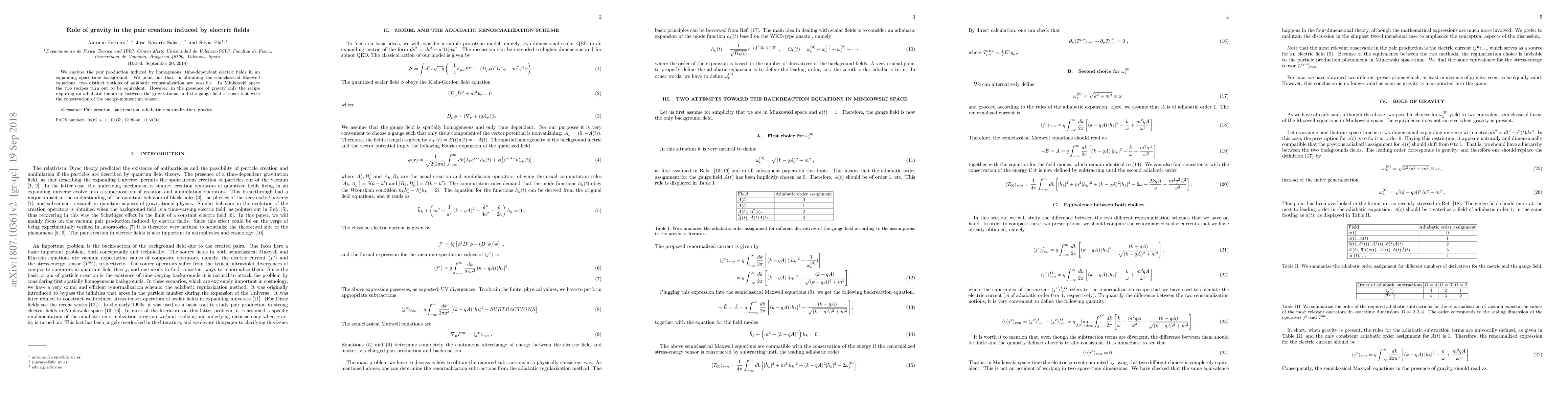 We analyze the pair production induced by homogenous, time-dependent electric fields in an expanding space-time background. We point out that, in obtaining the semiclassical Maxwell equations, two distinct notions of adiabatic renormalization are possible. In Minkowski space the two recipes turn out to be equivalent. However, in the presence of gravity only the recipe requiring an adiabatic hierarchy between the gravitational and the gauge field is consistent with the conservation of the energy-momentum tensor.