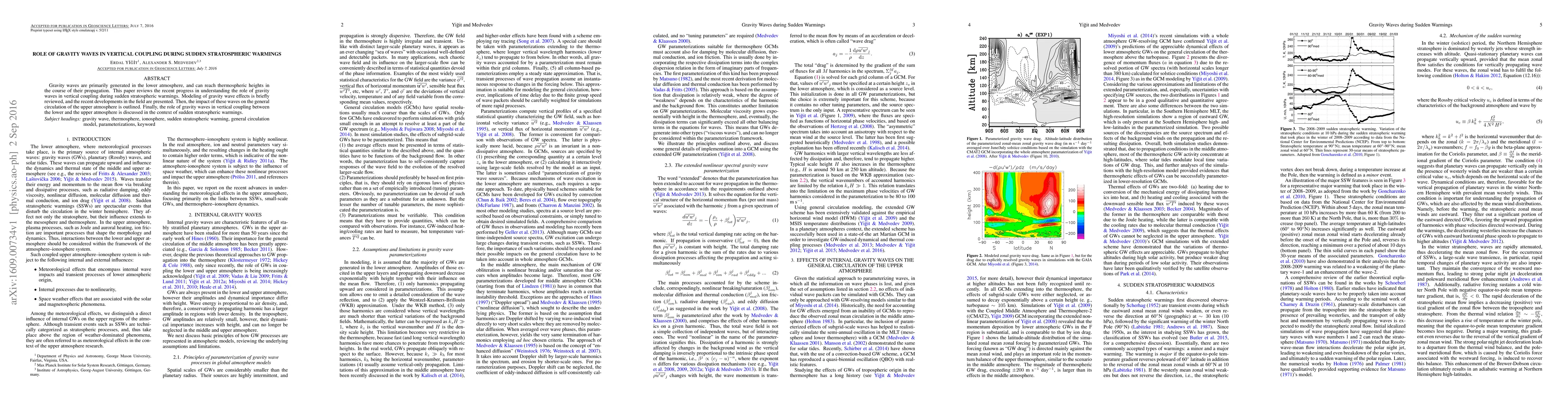 This paper reviews recent advancements in understanding how gravity waves, originating in the lower atmosphere, influence vertical coupling during sudden stratospheric warmings, and discusses their impact on the upper atmosphere's general circulation.