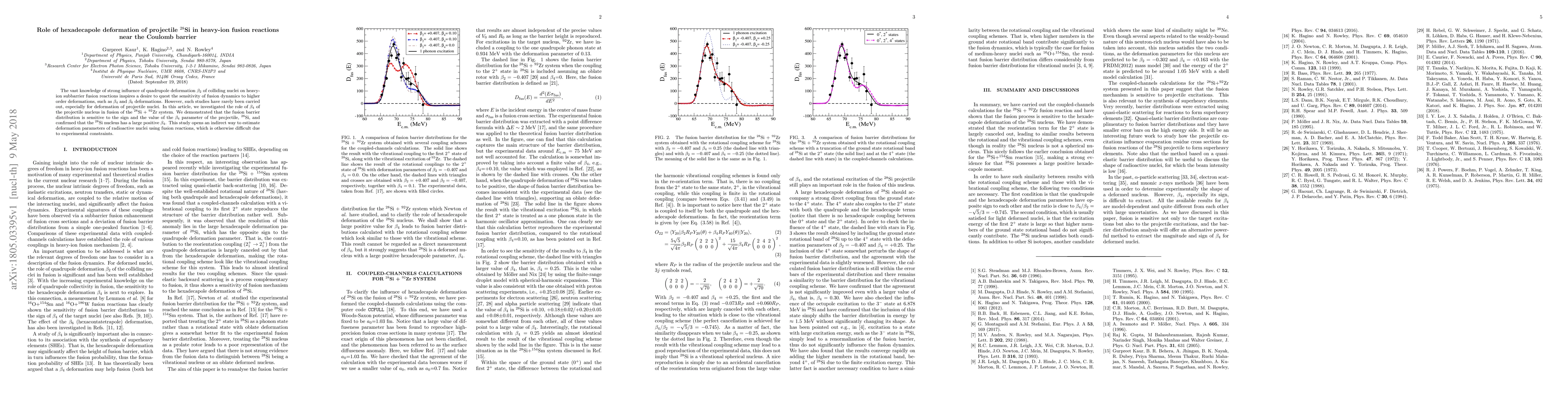 This paper investigates the impact of hexadecapole deformation ($\beta_4$) of the projectile nucleus $^{28}$Si on the fusion dynamics in the $^{28}$Si + $^{92}$Zr system. It finds that the fusion barrier distribution is sensitive to the $\beta_4$ parameter, revealing a significant positive $\beta_4$ for $^{28}$Si and suggesting a new method for estimating deformation parameters of radioactive nuclei via fusion reactions.