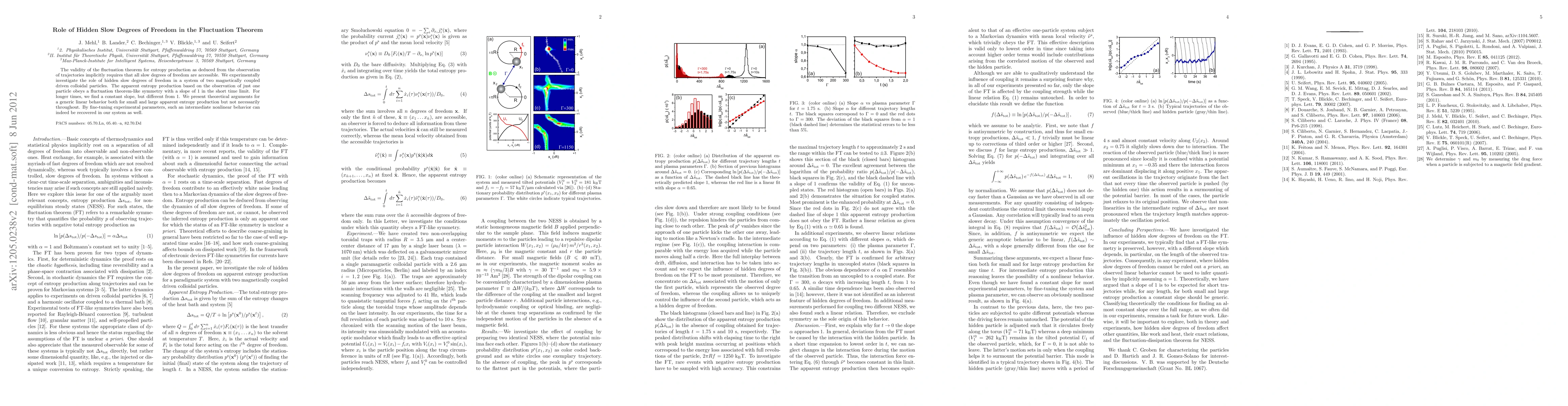 This paper investigates the impact of hidden slow degrees of freedom on the fluctuation theorem in a system of driven colloidal particles. The study finds that while short-term entropy production follows a fluctuation theorem-like symmetry, longer-term behavior deviates, exhibiting a linear relationship rather than the expected slope of 1.