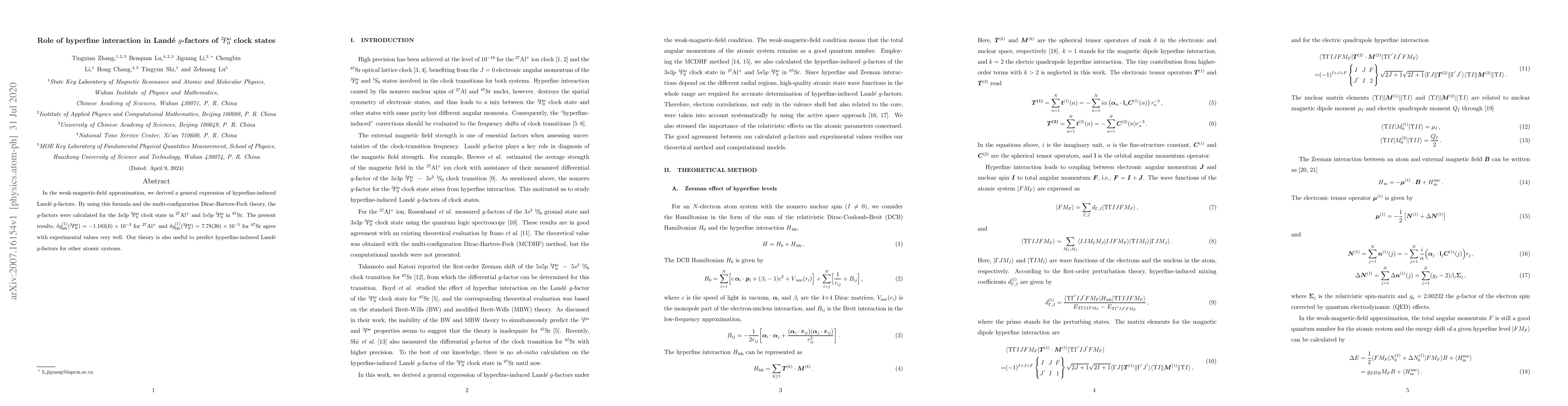 This paper derives a general expression for hyperfine-induced Landé $g$-factors and applies it to calculate these factors for $^3\!P^o_0$ clock states in $^{27}$Al$^+$ and $^{87}$Sr, achieving good agreement with experimental values. The method is also proposed for predicting $g$-factors in other atomic systems.
