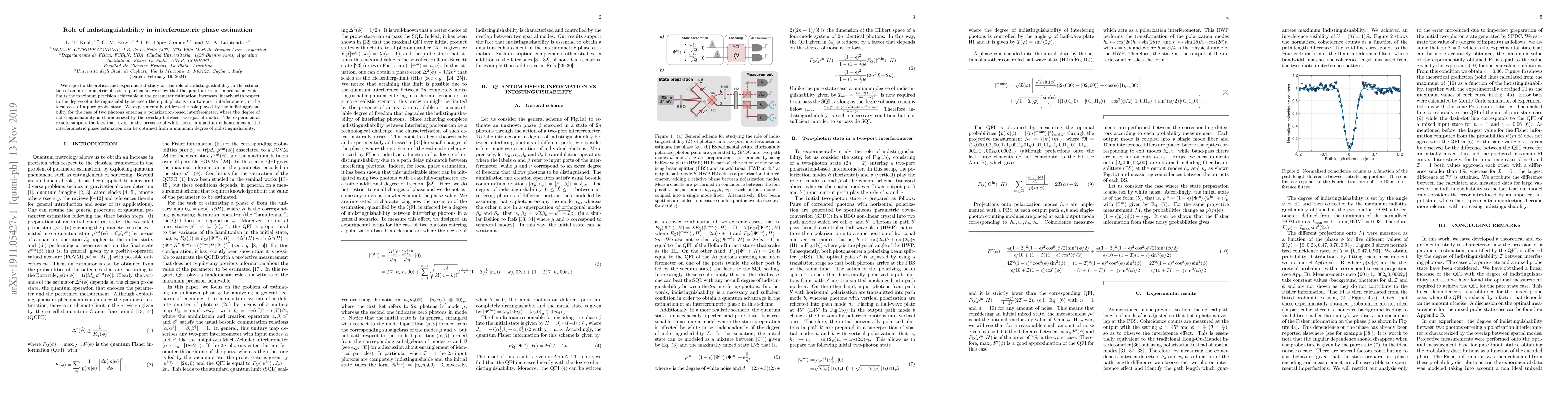 We report a theoretical and experimental study on the role of indistinguishability in the estimation of an interferometric phase. In particular, we show that the quantum Fisher information, which limits the maximum precision achievable in the parameter estimation, increases linearly with respect to the degree of indistinguishability between the input photons in a two-port interferometer, in the ideal case of a pure probe state. We experimentally address the role played by the indistinguishability for the case of two photons entering a polarization-based interferometer, where the degree of indistinguishability is characterized by the overlap between two spatial modes. The experimental results support the fact that, even in the presence of white noise, a quantum enhancement in the interferometric phase estimation can be obtained from a minimum degree of indistinguishability.