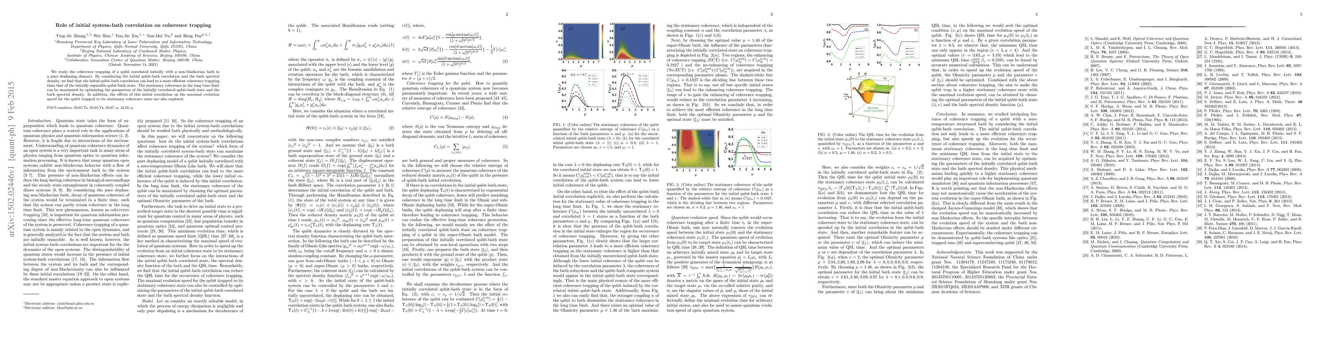 This paper investigates how initial qubit-bath correlations affect coherence trapping in a non-Markovian bath, finding that such correlations can enhance coherence trapping efficiency compared to a separable initial state. The study also explores how optimizing initial correlations and bath spectral density parameters maximizes long-term coherence.