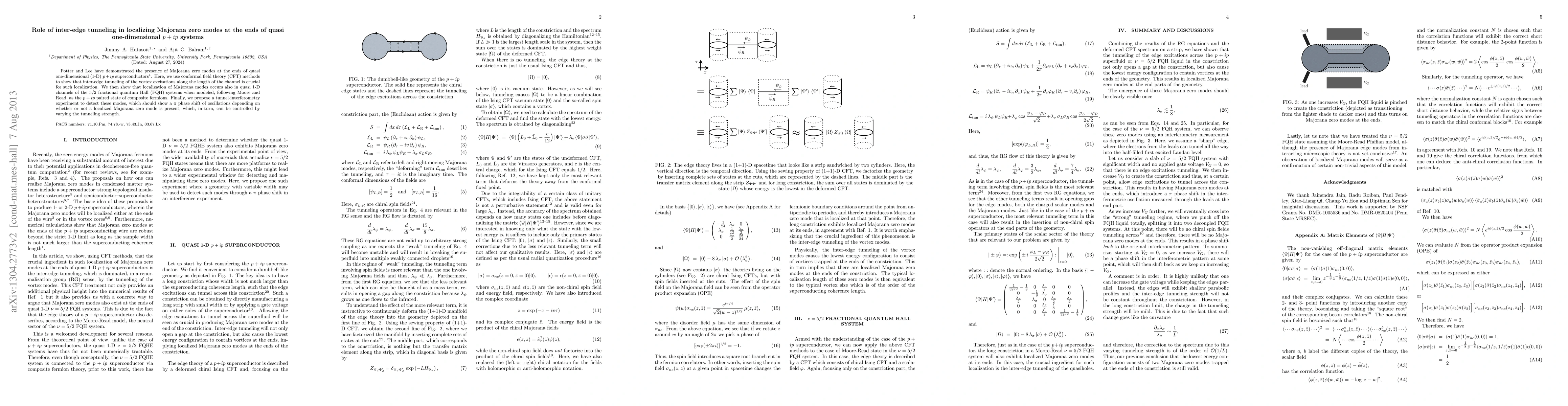This paper demonstrates that inter-edge tunneling is essential for localizing Majorana zero modes at the ends of quasi one-dimensional p+ip superconductors, using conformal field theory methods. The study also proposes a tunnel-interferometry experiment to detect these modes, which would exhibit a π-phase shift depending on the presence of a localized Majorana zero mode.