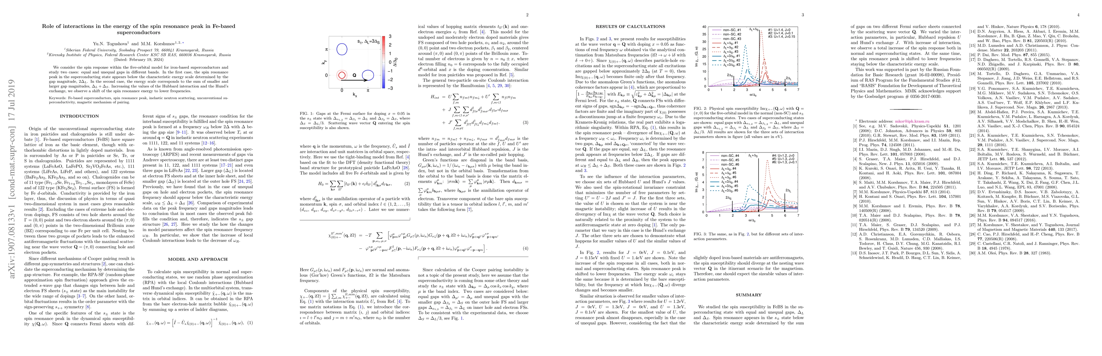 We consider the spin response within the five-orbital model for iron-based superconductors and study two cases: equal and unequal gaps in different bands. In the first case, the spin resonance peak in the superconducting state appears below the characteristic energy scale determined by the gap magnitude, $2\Delta_L$. In the second case, the energy scale corresponds to the sum of smaller and larger gap magnitudes, $\Delta_L + \Delta_S$. Increasing the values of the Hubbard interaction and the Hund's exchange, we observe a shift of the spin resonance energy to lower frequencies.
