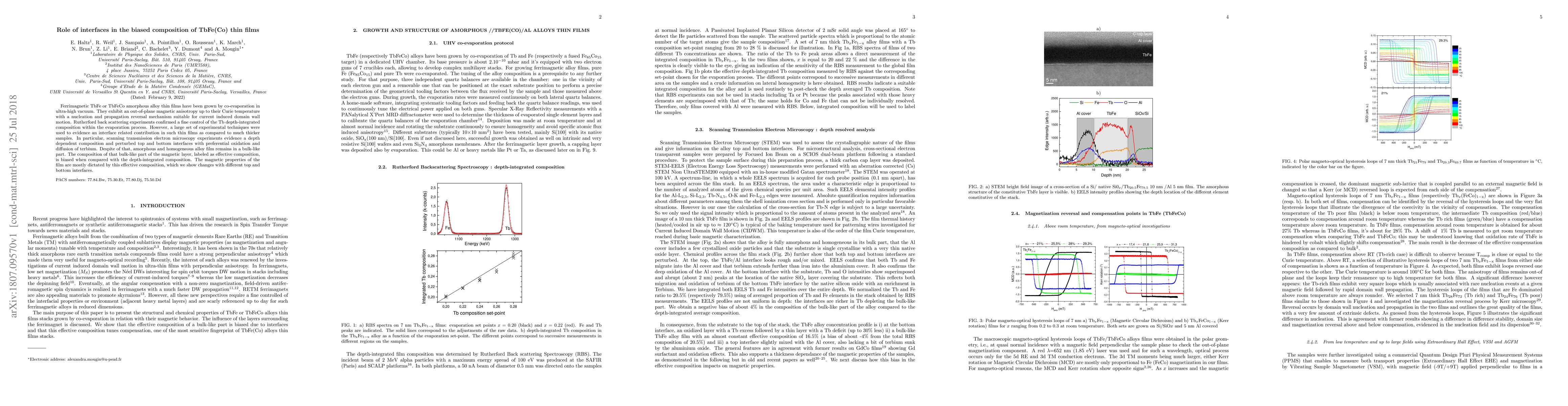 This paper investigates the role of interfaces in the composition of TbFe(Co) thin films, revealing that interface-related effects lead to a biased effective composition that significantly influences the magnetic properties, despite the depth-integrated composition being finely controlled. Interfaces cause depth-dependent composition variations and preferential oxidation, affecting the film's magnetic behavior.