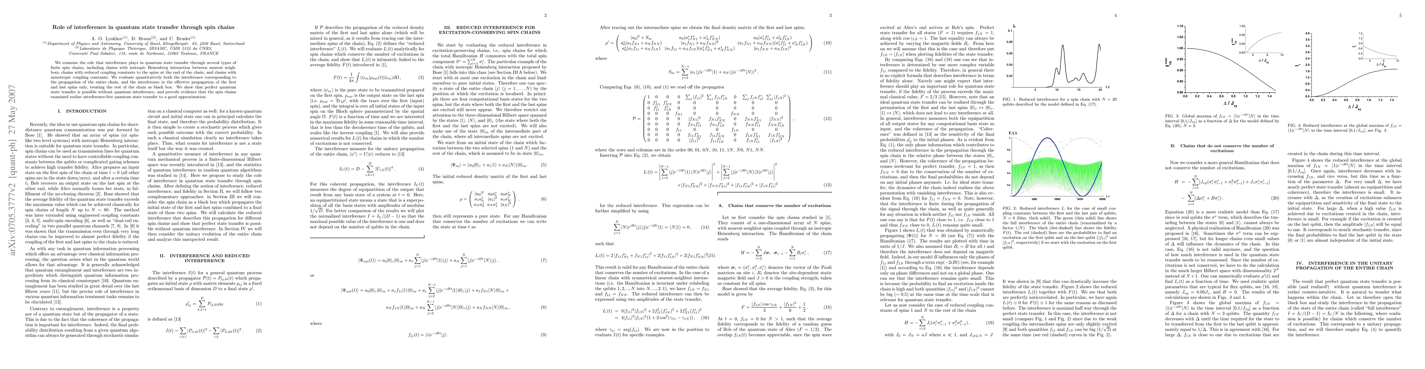 The paper presents a detailed analysis of interference in quantum state transfer through spin chains, demonstrating that perfect transfer is possible without quantum interference and providing a quantitative understanding of interference in both full and reduced chain propagations.