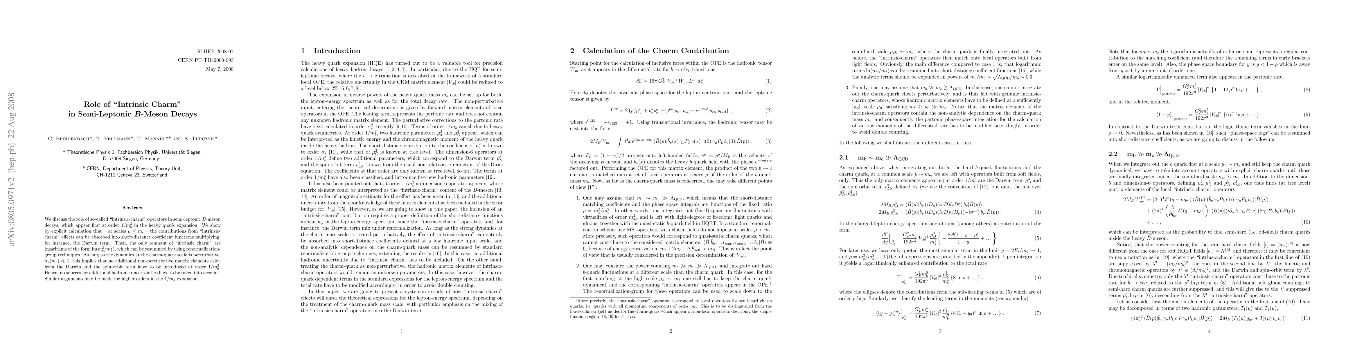 We discuss the role of so-called "intrinsic-charm" operators in semi-leptonic B-meson decays, which appear first at order 1/m_b^3 in the heavy quark expansion. We show by explicit calculation that -- at scales mu <= m_c -- the contributions from "intrinsic-charm" effects can be absorbed into short-distance coefficient functions multiplying, for instance, the Darwin term. Then, the only remnant of "intrinsic charm" are logarithms of the form ln(m_c^2/m_b^2), which can be resummed by using renormalization-group techniques. As long as the dynamics at the charm-quark scale is perturbative, alpha_s(m_c) << 1, this implies that no additional non-perturbative matrix elements aside from the Darwin and the spin-orbit term have to be introduced at order 1/m_b^3. Hence, no sources for additional hadronic uncertainties have to be taken into account. Similar arguments may be made for higher orders in the 1/m_b expansion.