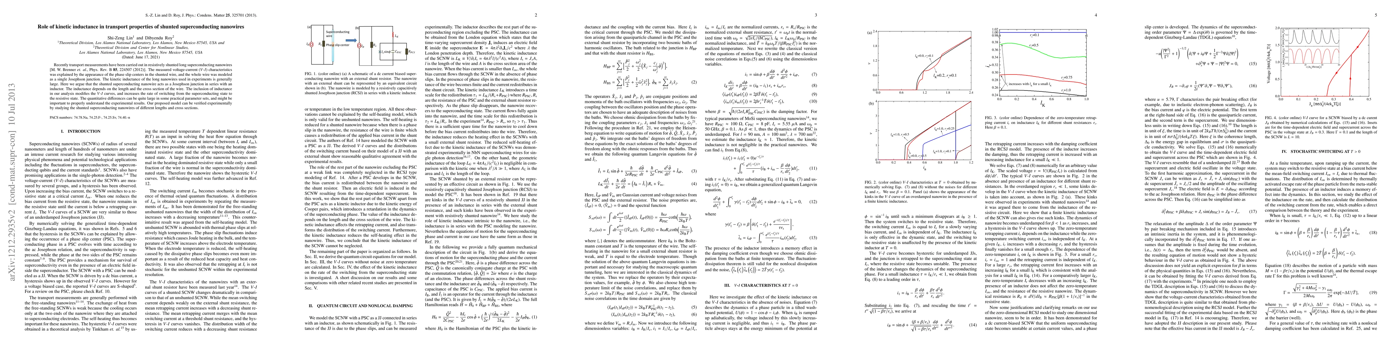 This paper argues that kinetic inductance significantly influences the transport properties of resistively shunted superconducting nanowires, modifying voltage-current characteristics and increasing the switching rate from superconducting to resistive states. The proposed model can be verified by experimentally studying nanowires of varying lengths and cross-sectional areas.