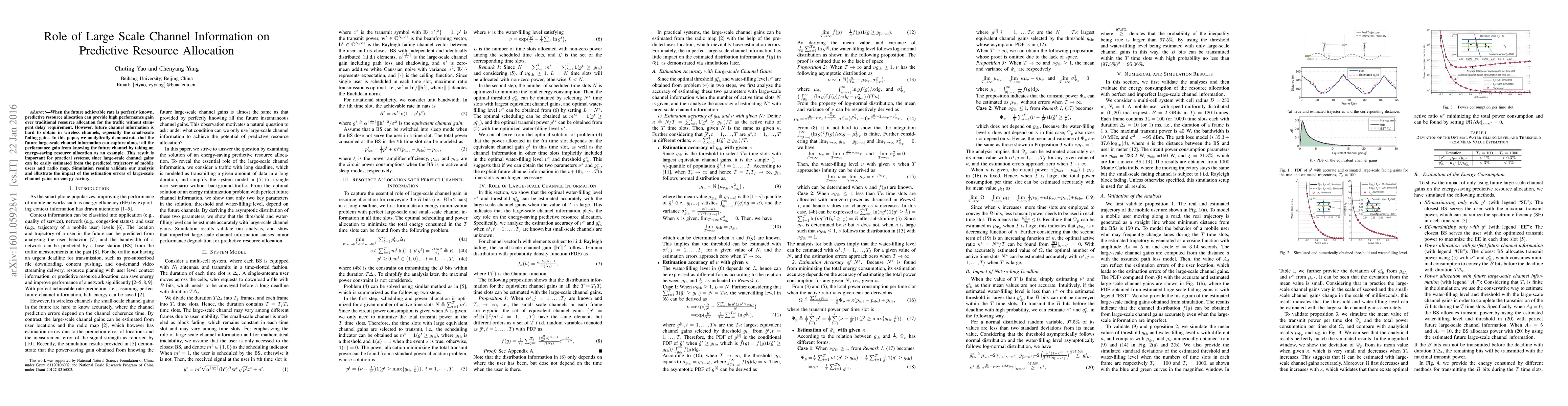 Future large-scale channel information can capture most performance gain from knowing the future channel through energy-saving resource allocation. This allows for practical estimation of gains from mobile user trajectories and radio maps.