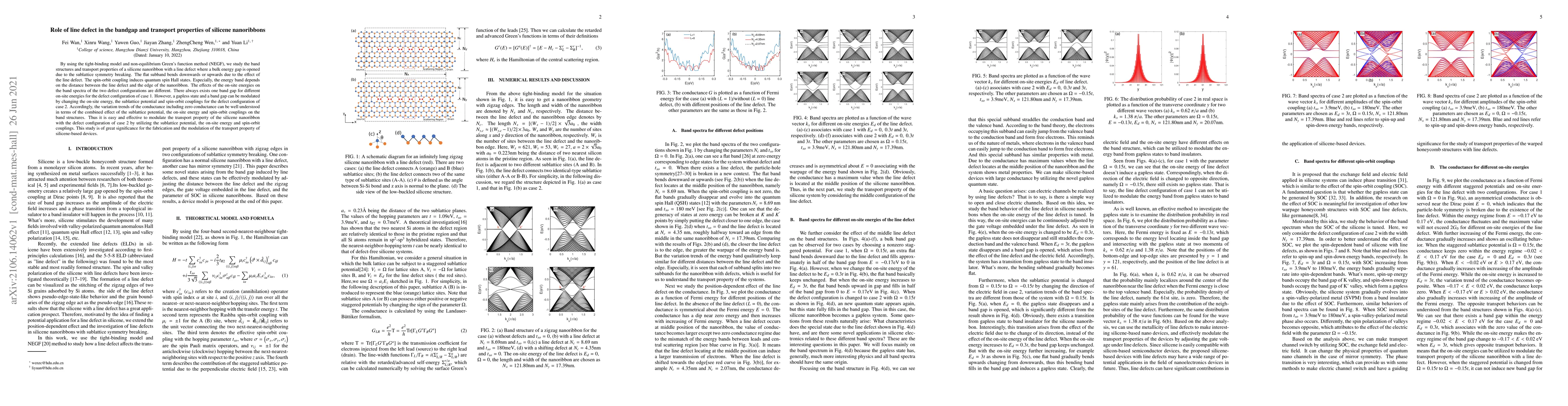 This study investigates the impact of line defects on the bandgap and transport properties of silicene nanoribbons using tight-binding and NEGF methods. The presence of a line defect induces quantum spin Hall states and modulates the band structure, with the energy band varying based on the defect's proximity to the nanoribbon edge. The transport properties can be effectively tuned by adjusting the sublattice potential, on-site energy, and spin-orbit couplings, particularly in the defect configuration of case 2.