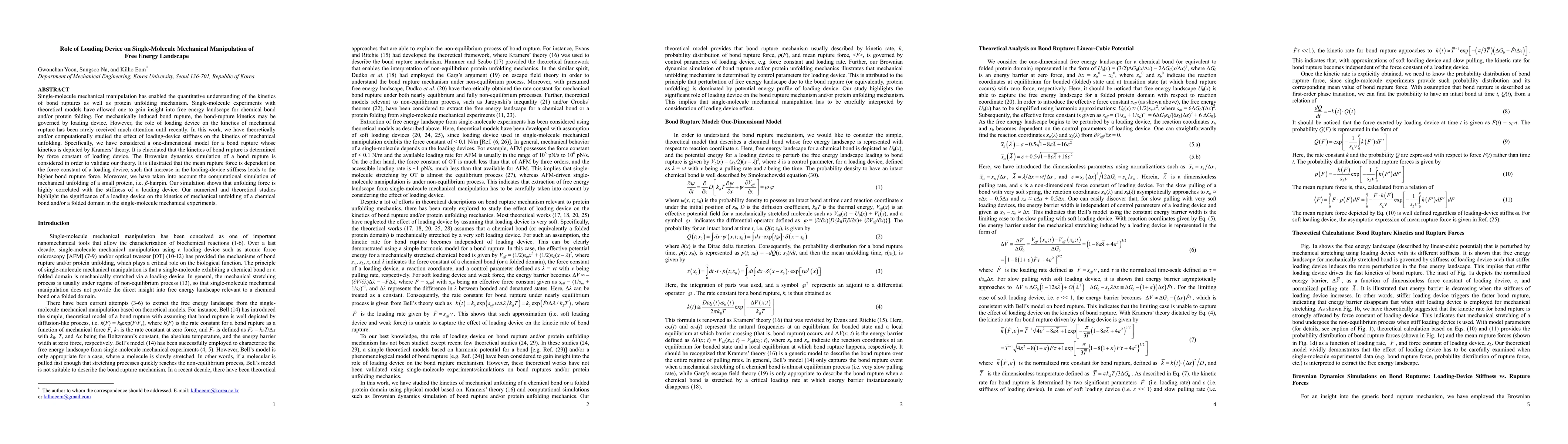 This paper investigates the impact of loading device stiffness on the kinetics of mechanical unfolding and bond rupture in single-molecule experiments. Theoretical and computational studies reveal that the mean rupture force and unfolding force are significantly influenced by the stiffness of the loading device, highlighting its crucial role in these processes.