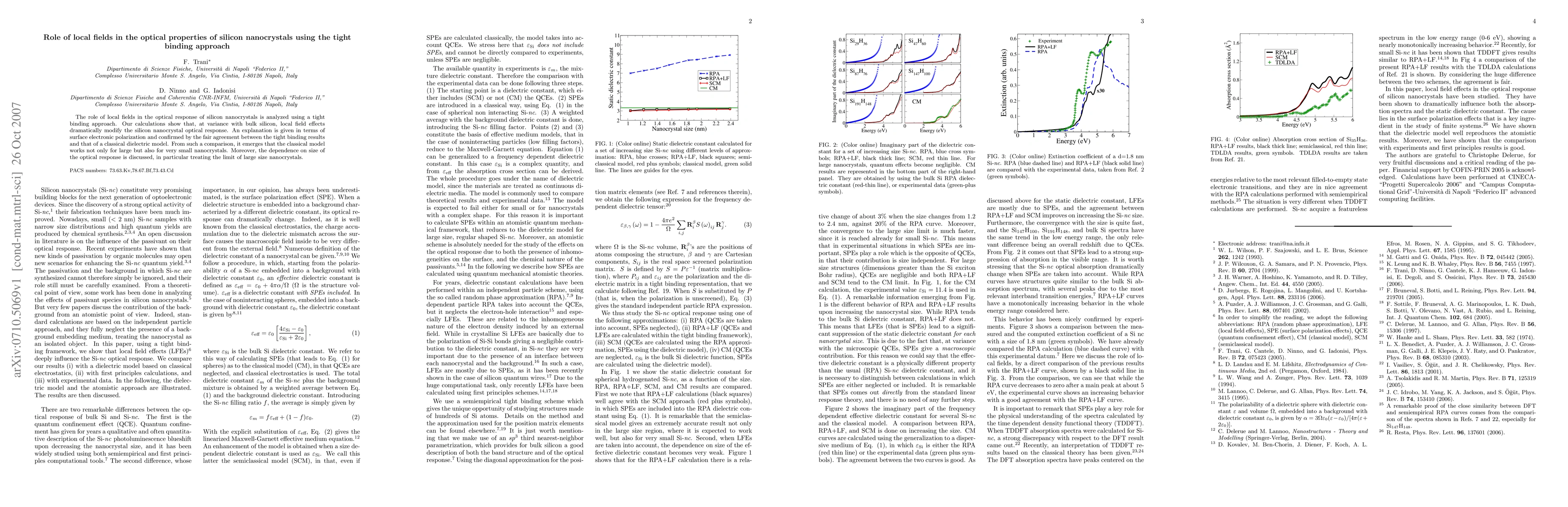 This paper investigates how local fields influence the optical properties of silicon nanocrystals using a tight binding approach, revealing that local field effects significantly alter the optical response compared to bulk silicon due to surface electronic polarization. The tight binding results are corroborated by a classical dielectric model, showing its applicability even for very small nanocrystals.