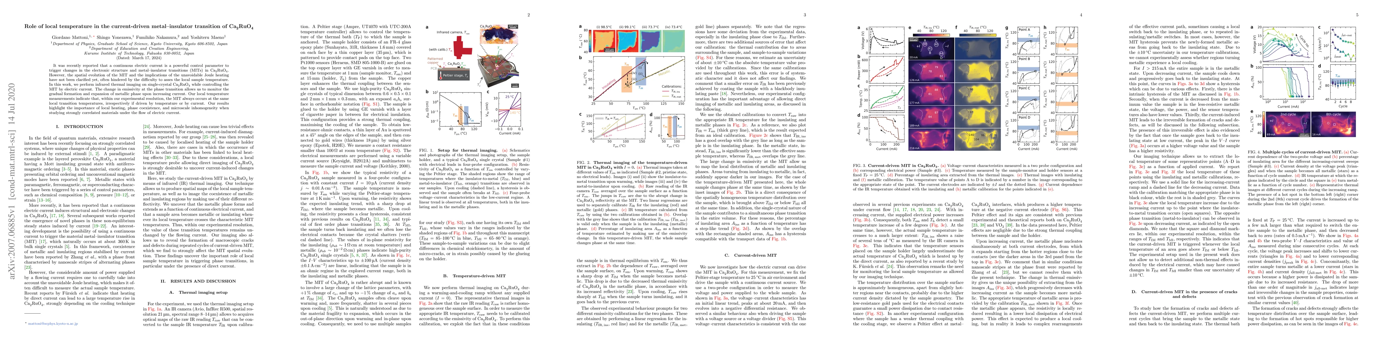 This study investigates the metal-insulator transition in Ca2RuO4 driven by electric current, using infrared thermal imaging to measure local temperatures. The findings reveal that the transition occurs at the same local temperature regardless of whether it's driven by current or temperature, emphasizing the role of local heating and microscale inhomogeneity in strongly correlated materials.