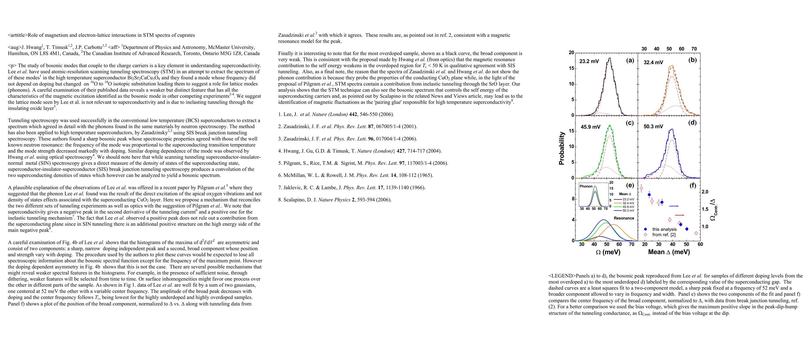 The study of bosonic modes that couple to the charge carriers is a key element in understanding superconductivity. Lee et al. have used atomic-resolution scanning tunneling spectroscopy (STM) in an attempt to extract the spectrum of of these modes in the high temperature superconductor Bi2Sr2CaCu2O8+d and they found a mode whose frequency did not depend on doping but changed on 16O to 18O isotopic substitution leading them to suggest a role for lattice modes (phonons). A careful examination of their published data reveals a weaker but distinct feature that has all the characteristics of the magnetic excitation identified as the bosonic mode in other competing experiments. We suggest the lattice mode seen by Lee et al. is not relevant to superconductivity and is due to inelastic tunneling through the insulating oxide layer.