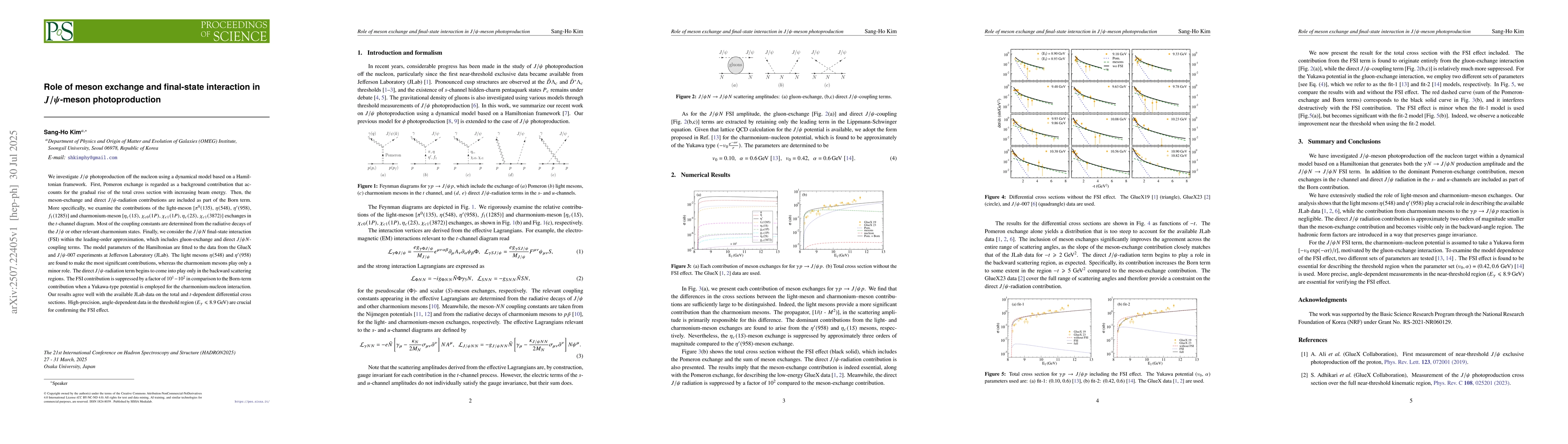 The study investigates $J/\psi$ photoproduction off the nucleon using a dynamical model based on a Hamiltonian framework. It includes Pomeron exchange as a background, meson-exchange contributions (light mesons: $\pi^0(135)$, $\eta(548)$, $\eta'(958)$, $f_1(1285)$; charmonium mesons: $\eta_c(1S)$, $\chi_{c0}(1P)$, $\chi_{c1}(1P)$, $\eta_c(2S)$, $\chi_{c1}(3872)$), and direct $J/\psi$-radiation terms in the $s$- and $t$-channels. The model parameters are fitted to GlueX and $J/\psi$-007 experiments at Jefferson Laboratory (JLab).