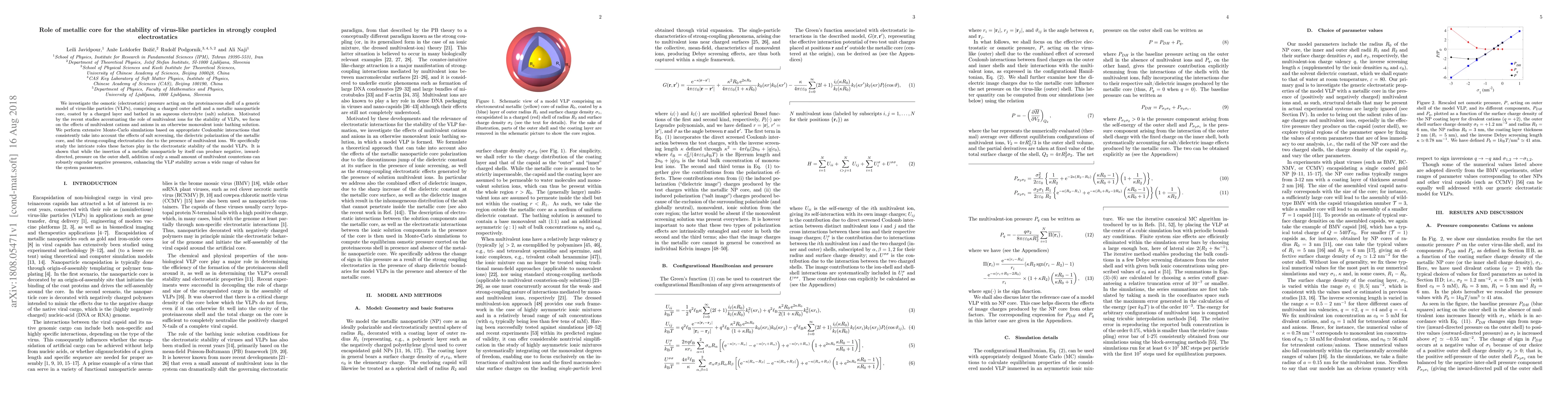 This paper investigates the electrostatic pressure on the protein shell of virus-like particles with a metallic core, focusing on the stability effects of multivalent ions in a monovalent ionic solution. Monte-Carlo simulations reveal that metallic cores alone induce inward pressure but multivalent ions significantly enhance VLP stability.