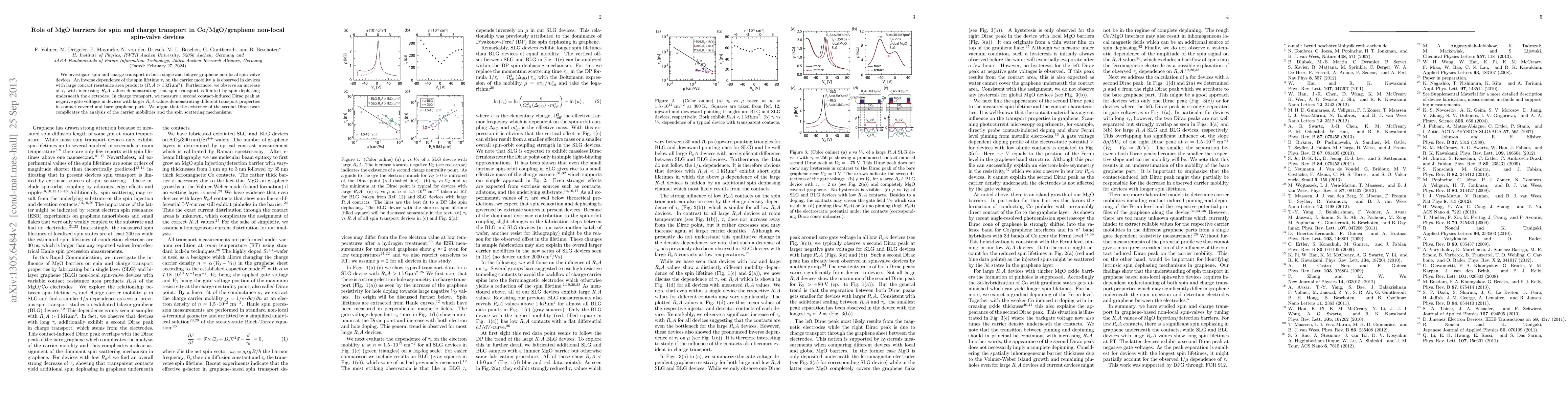 We investigate spin and charge transport in both single and bilayer graphene non-local spin-valve devices. Similar to previous studies on bilayer graphene, we observe an inverse dependence of the spin lifetime on the carrier mobility in our single layer devices. This general trend is only observed in devices with large contact resistances. Furthermore, we observe a second Dirac peak in devices with long spin lifetimes. This results from charge transport underneath the contacts. In contrast, all devices with low ohmic contact resistances only exhibit a single Dirac peak. Additionally, the spin lifetime is significantly reduced indicating that an additional spin dephasing occurs underneath the electrodes.