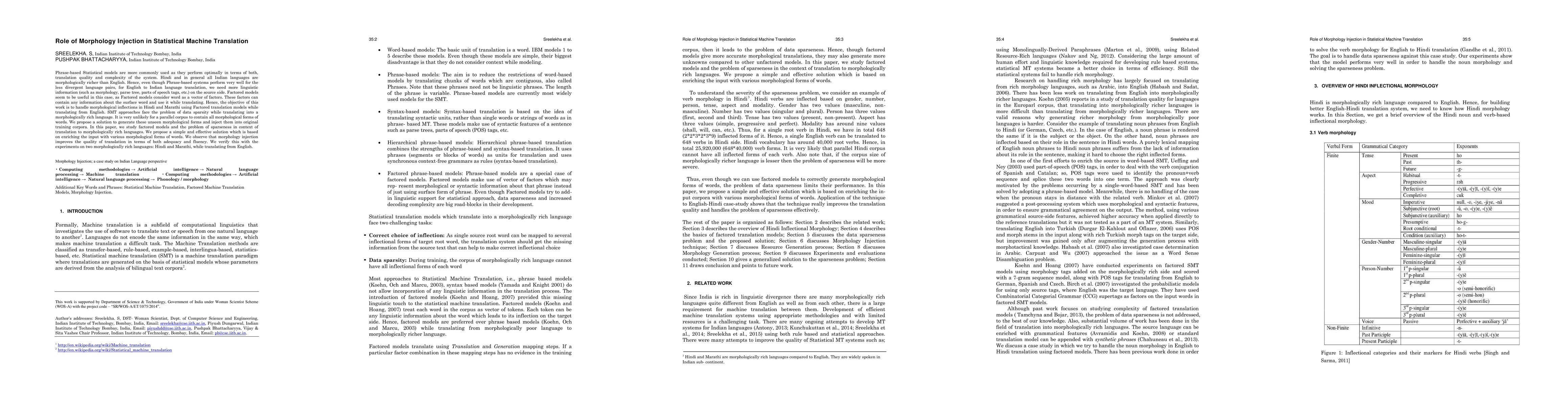 This paper explores how injecting morphological information into statistical machine translation models improves translation quality for Hindi and Marathi languages, two of the most morphologically rich languages.