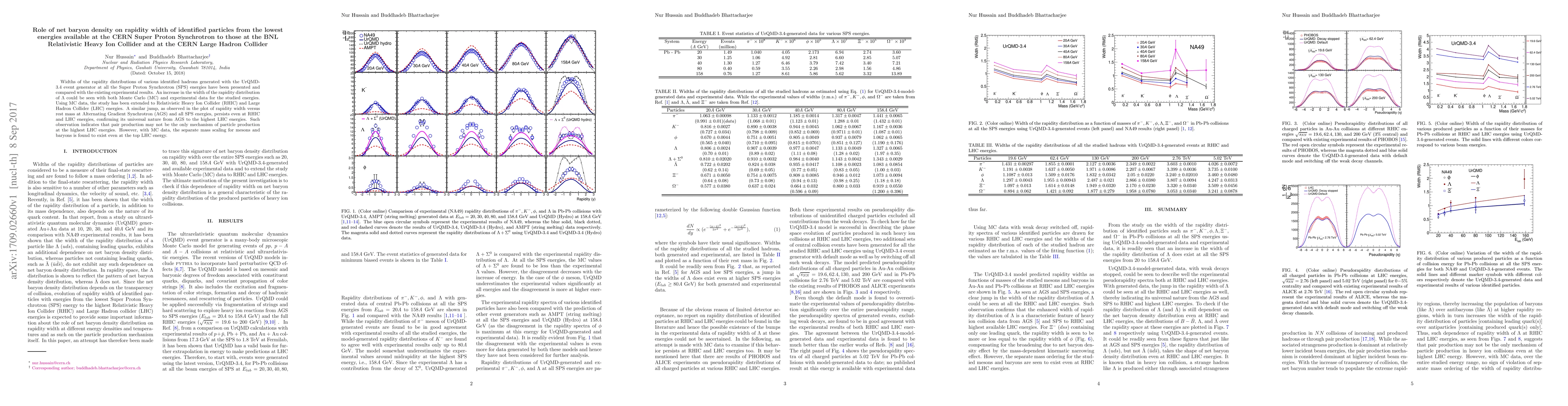 Widths of the rapidity distributions of various identified hadrons generated with the UrQMD-3.4 event generator at all the Super Proton Synchrotron (SPS) energies have been presented and compared with the existing experimental results. An increase in the width of the rapidity distribution of $\Lambda$ could be seen with both Monte Carlo (MC) and experimental data for the studied energies. Using MC data, the study has been extended to Relativistic Heavy Ion Collider (RHIC) and Large Hadron Collider (LHC) energies. A similar jump, as observed in the plot of rapidity width versus rest mass at Alternating Gradient Synchrotron (AGS) and all SPS energies, persists even at RHIC and LHC energies, confirming its universal nature from AGS to the highest LHC energies. Such observation indicates that pair production may not be the only mechanism of particle production at the highest LHC energies. However, with MC data, the separate mass scaling for mesons and baryons is found to exist even at the top LHC energy.