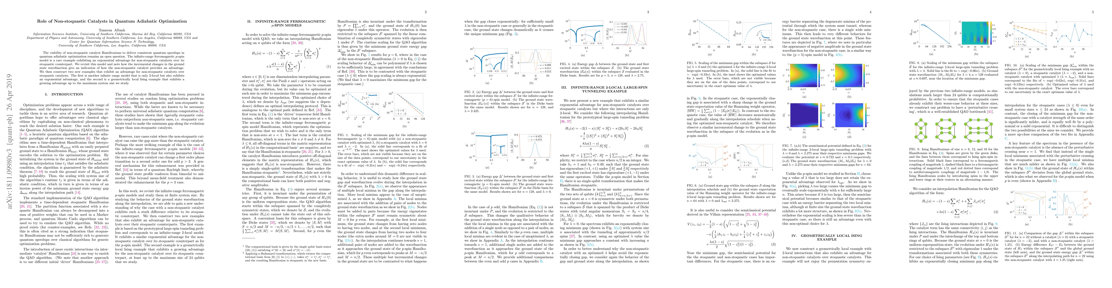 This paper explores the potential of non-stoquastic catalysts to achieve quantum speedups in quantum adiabatic optimization, highlighting the infinite-range ferromagnetic $p$-spin model as an example. It constructs two new models showing exponential advantages for non-stoquastic catalysts, indicating their potential beyond stoquastic counterparts.