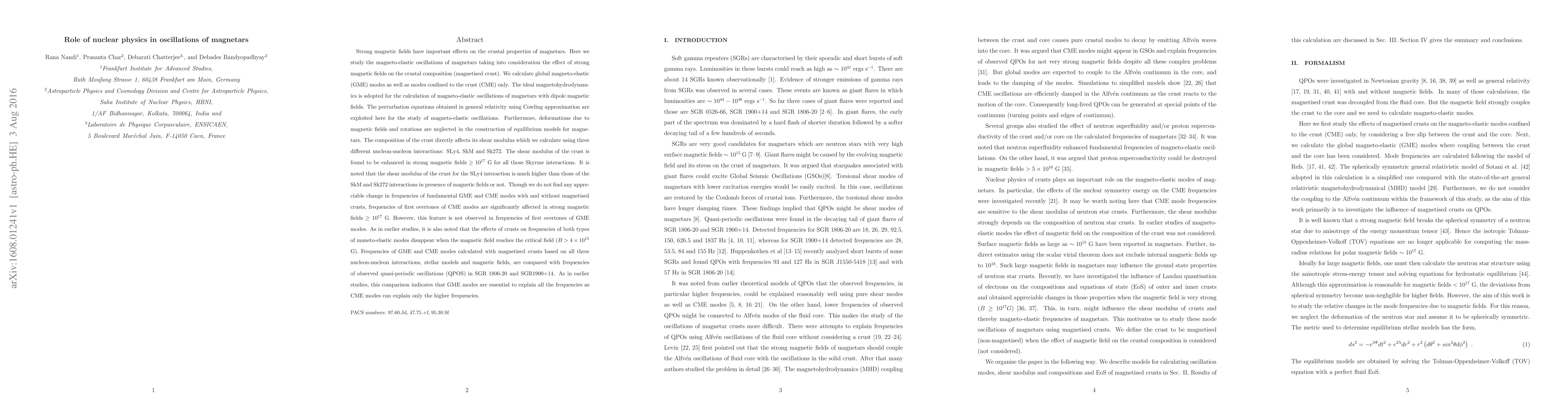 This paper investigates the magneto-elastic oscillations of magnetars, considering the influence of strong magnetic fields on the crustal composition. It finds that the shear modulus of the crust increases significantly in fields of $10^{17}$ G or higher, with notable differences among various nucleon-nucleon interactions. While fundamental oscillation frequencies remain largely unchanged, the first overtones of crust-confined modes are significantly affected by strong magnetic fields, suggesting a potential link to observed quasi-periodic oscillations.