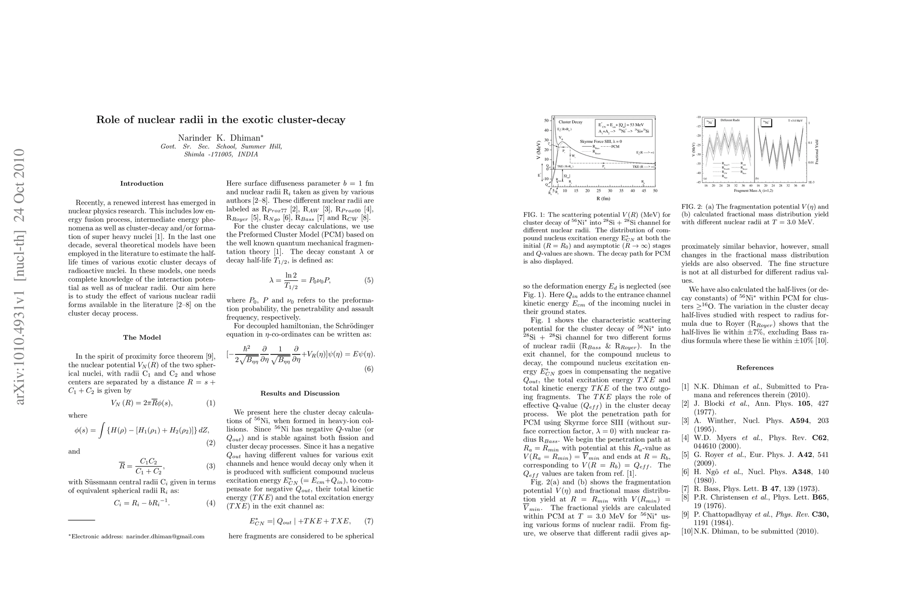 We have calculated the half-lives of $^{56}$Ni$^{\ast}$ within PCM for clusters $\ge ^{16}$O. The cluster decay half-lives studied with respect to radius formula due to Royer (R$_{Royer}$) shows that the half-lives lie within $\pm$7%, excluding Bass radius formula where these lie within $\pm$10%.