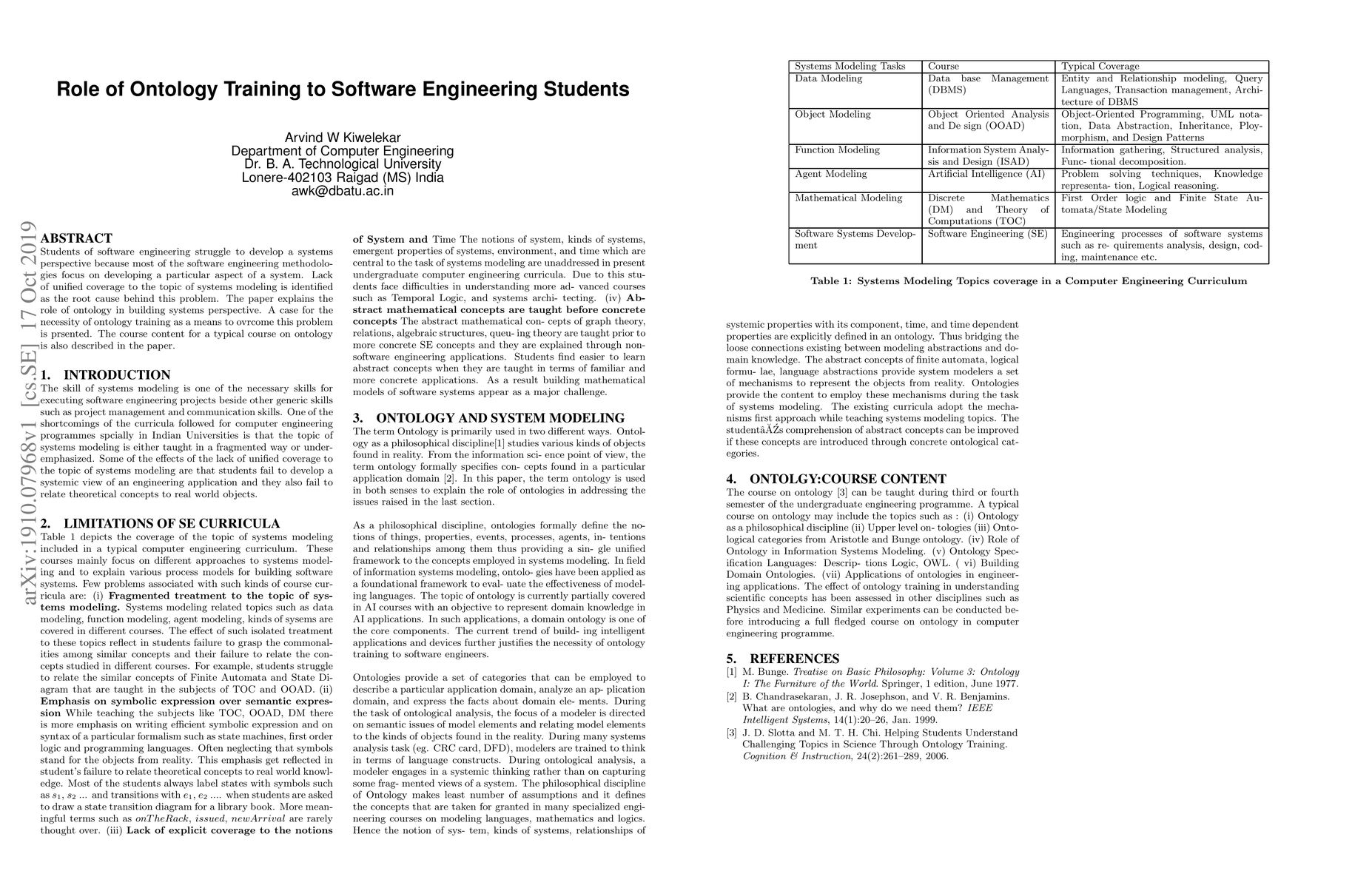The paper presents the role of ontology in building a systems perspective and recommends ontology training to improve software engineering education.