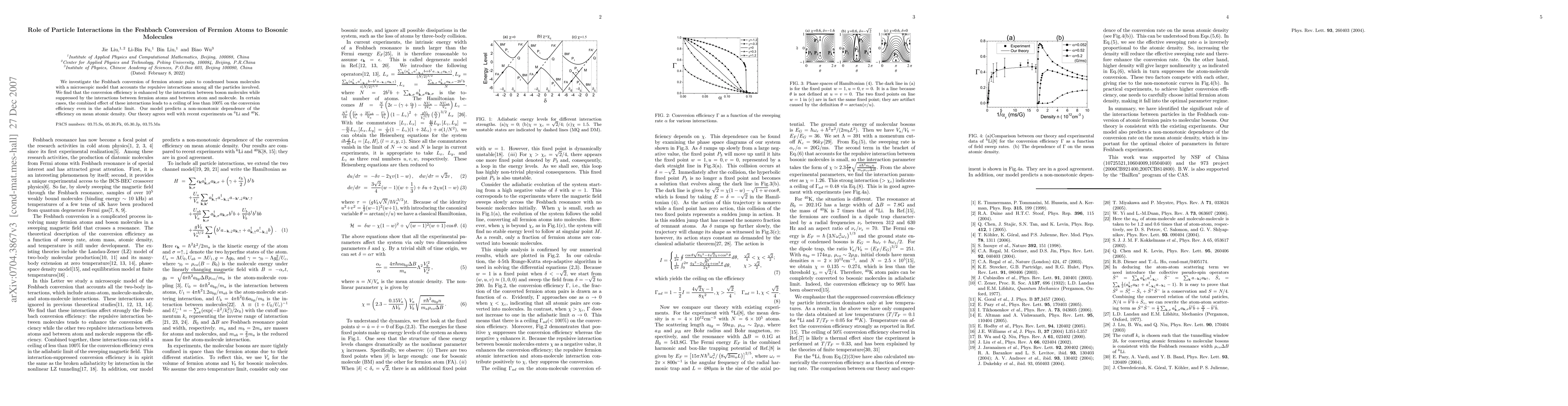 We investigate the Feshbach conversion of fermion atomic pairs to condensed boson molecules with a microscopic model that accounts the repulsive interactions among all the particles involved. We find that the conversion efficiency is enhanced by the interaction between boson molecules while suppressed by the interactions between fermion atoms and between atom and molecule. In certain cases, the combined effect of these interactions leads to a ceiling of less than 100% on the conversion efficiency even in the adiabatic limit. Our model predicts a non-monotonic dependence of the efficiency on mean atomic density. Our theory agrees well with recent experiments on $^6$Li and $^{40}$K.