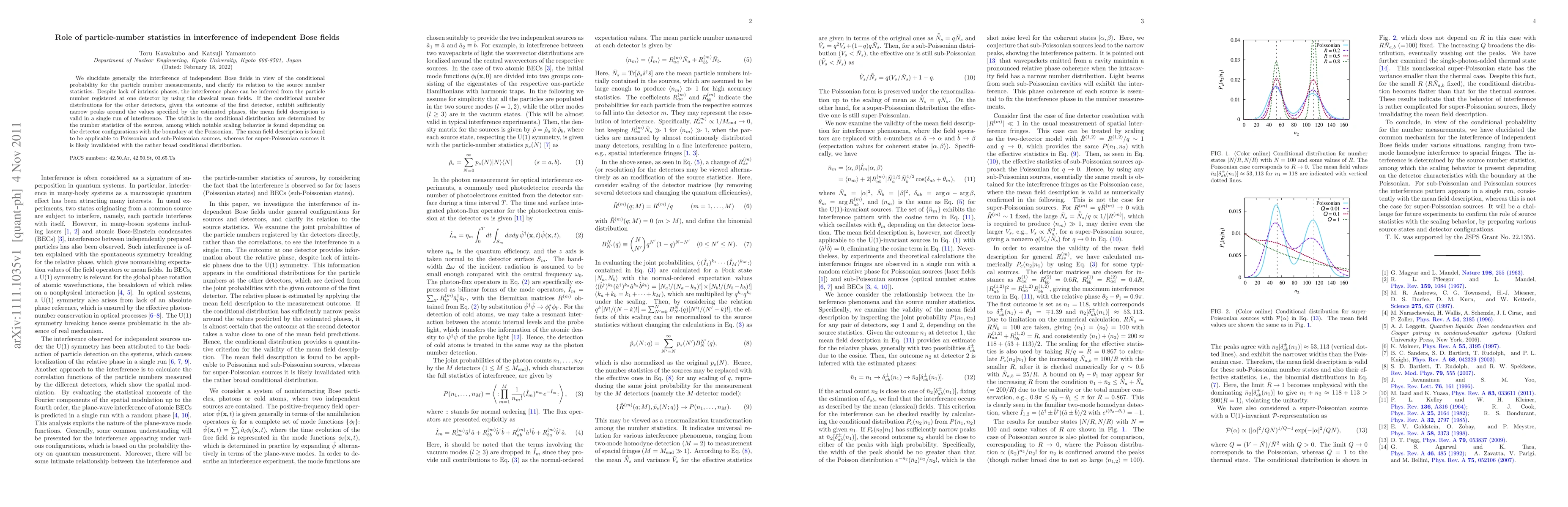 We elucidate generally the interference of independent Bose fields in view of the conditional probability for the particle number measurements, and clarify its relation to the source number statistics. Despite lack of intrinsic phases, the interference phase can be inferred from the particle number registered at one detector by using the classical mean fields. If the conditional number distributions for the other detectors, given the outcome of the first detector, exhibit sufficiently narrow peaks around the values specified by the estimated phases, the mean field description is valid in a single run of interference. The widths in the conditional distribution are determined by the number statistics of the sources, among which notable scaling behavior is found depending on the detector configurations with the boundary at the Poissonian. The mean field description is found to be applicable to Poissonian and sub-Poissonian sources, whereas for super-Poissonian sources it is likely invalidated with the rather broad conditional distribution.