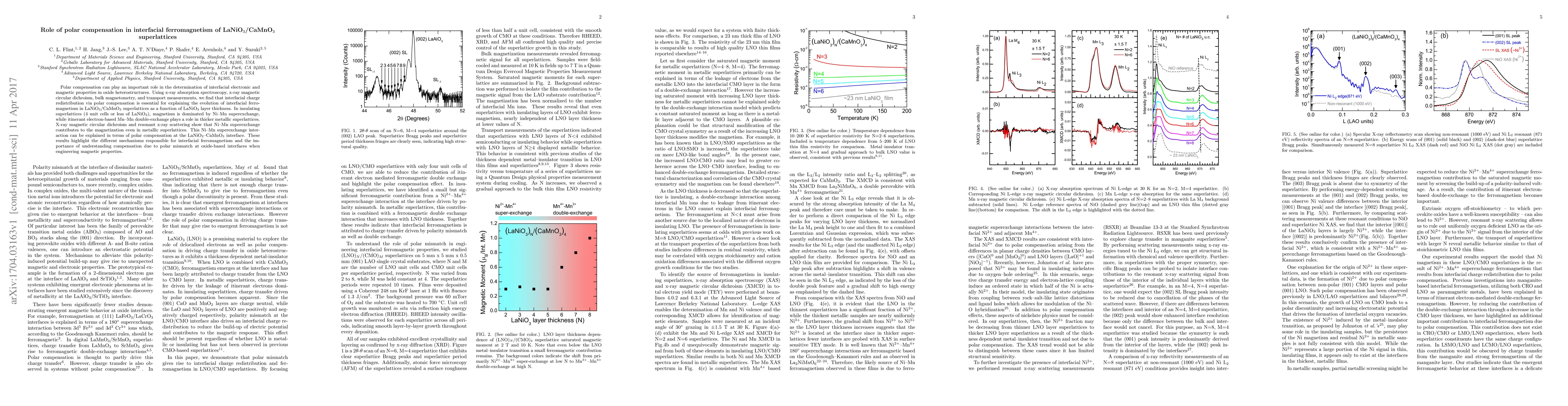 Polar compensation can play an important role in the determination of interfacial electronic and magnetic properties in oxide heterostructures. Using x-ray absorption spectroscopy, x-ray magnetic circular dichroism, bulk magnetometry, and transport measurements, we find that interfacial charge redistribution via polar compensation is essential for explaining the evolution of interfacial ferromagnetism in LaNiO$_3$/CaMnO$_3$ superlattices as a function of LaNiO$_3$ layer thickness. In insulating superlattices (4 unit cells or less of LaNiO$_3$), magnetism is dominated by Ni-Mn superexchange, while itinerant electron-based Mn-Mn double-exchange plays a role in thicker metallic superlattices. X-ray magnetic circular dichroism and resonant x-ray scattering show that Ni-Mn superexchange contributes to the magnetization even in metallic superlattices. This Ni-Mn superexchange interaction can be explained in terms of polar compensation at the LaNiO$_3$-CaMnO$_3$ interface. These results highlight the different mechanisms responsible for interfacial ferromagnetism and the importance of understanding compensation due to polar mismatch at oxide-based interfaces when engineering magnetic properties.