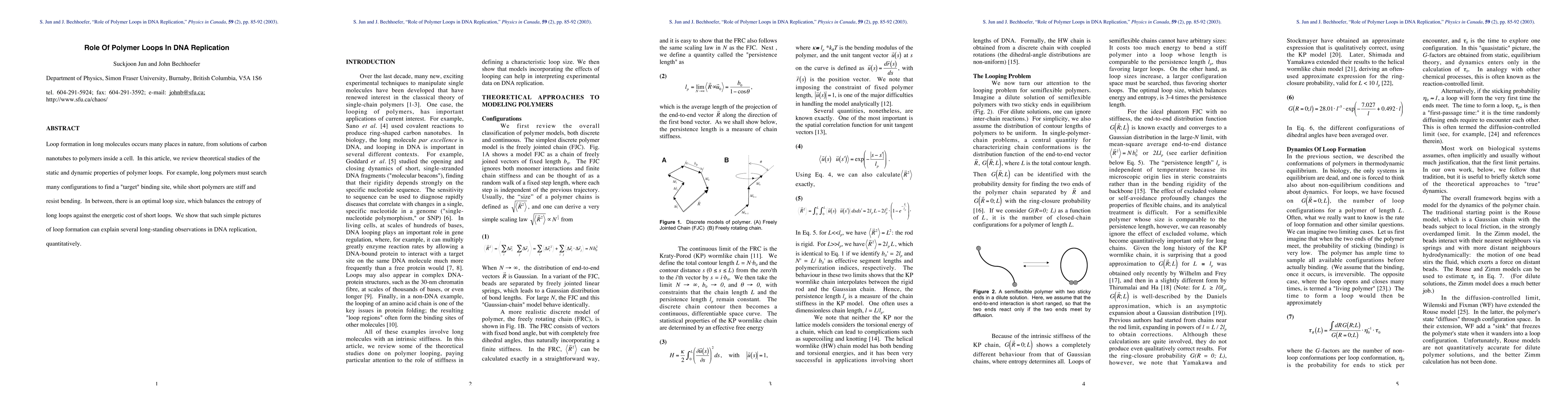 This paper reviews theoretical studies on polymer loop formation, highlighting an optimal loop size balancing entropy and energy costs. It explains DNA replication observations quantitatively, showing simple loop formation pictures can account for long-standing observations in the process.