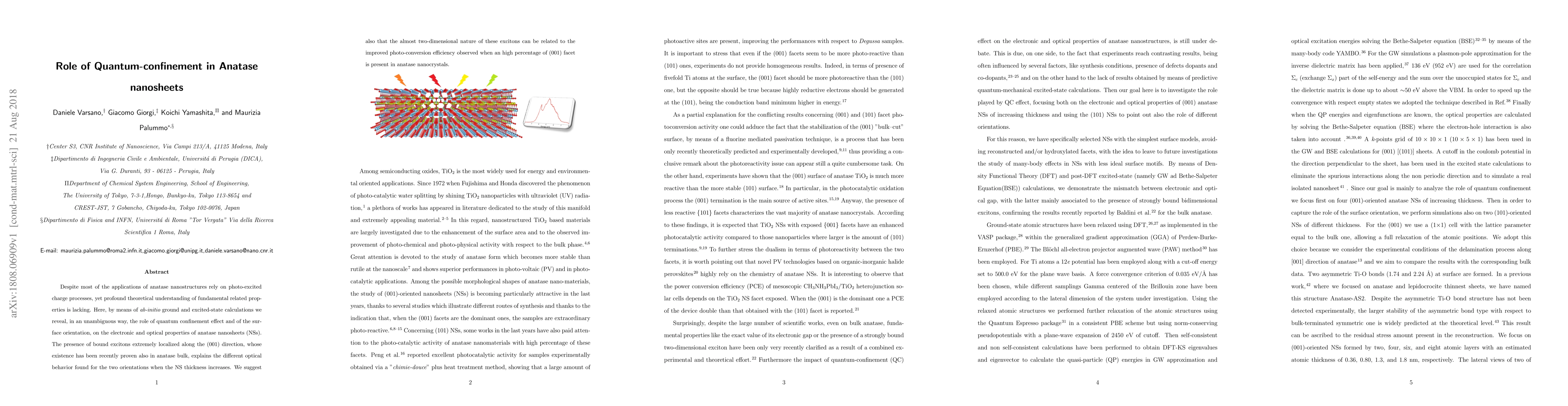 Researchers found that quantum confinement in anatase nanosheets affects their electronic and optical properties, leading to improved photoconversion efficiency when certain facets are present. They also discovered bound excitons localized along specific directions that explain the different optical behavior of nanosheets.