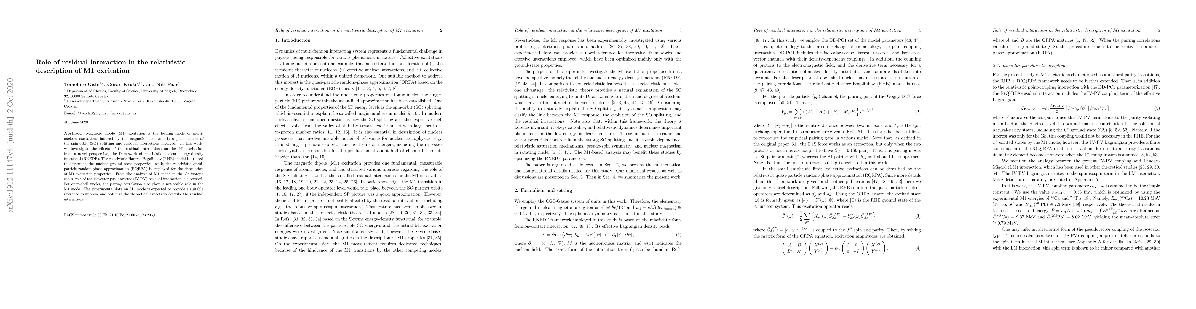 Magnetic dipole (M1) excitation is the leading mode of multi-nucleon excitations induced by the magnetic field, and is a phenomenon of the spin-orbit (SO) splitting and residual interactions involved. In this work, we investigate the effects of the residual interactions on the M1 excitation from a novel perspective, the framework of relativistic nuclear energy-density functional (RNEDF). The relativistic Hartree-Bogoliubov (RHB) model is utilized to determine the nuclear ground state properties, while the relativistic quasi-particle random-phase approximation (RQRPA) is employed for the description of M1-excitation properties. From the analysis of M1 mode in the Ca isotope chain, role of the isovector-pseudovector (IV-PV) residual interaction is discussed. For open-shell nuclei, the pairing correlation also plays a noticeable role in the M1 mode. The experimental data on M1 mode is expected to provide a suitable reference to improve and optimize the theoretical aspects to describe the residual interactions.