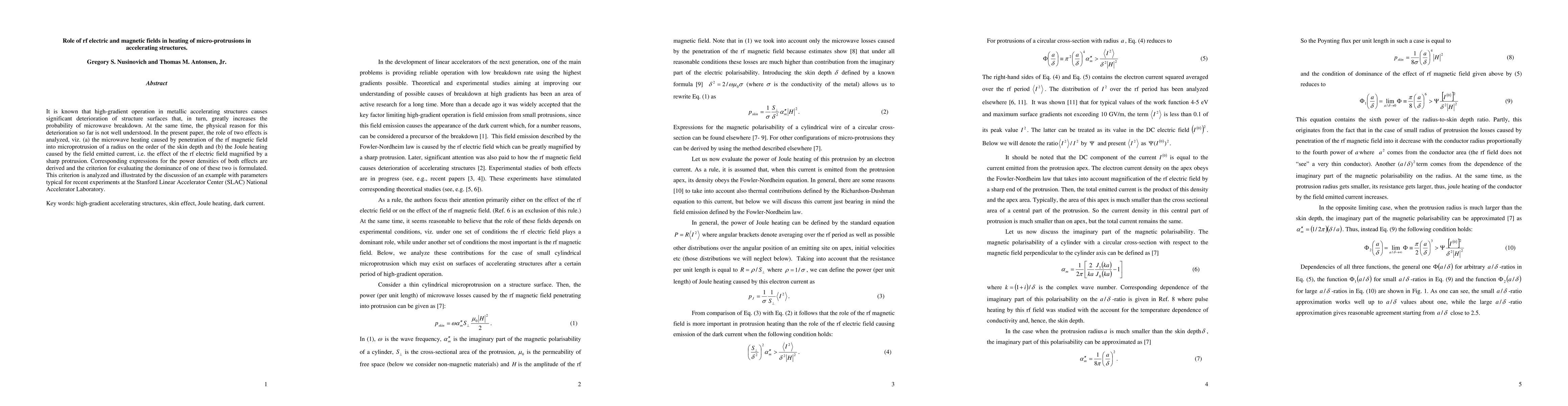 This paper investigates the mechanisms behind surface deterioration in metallic accelerating structures under high-gradient rf fields, focusing on microwave heating by rf magnetic fields and Joule heating by the rf electric field amplified by sharp protrusions. It derives expressions for power densities of both effects and proposes a criterion to determine which effect dominates.